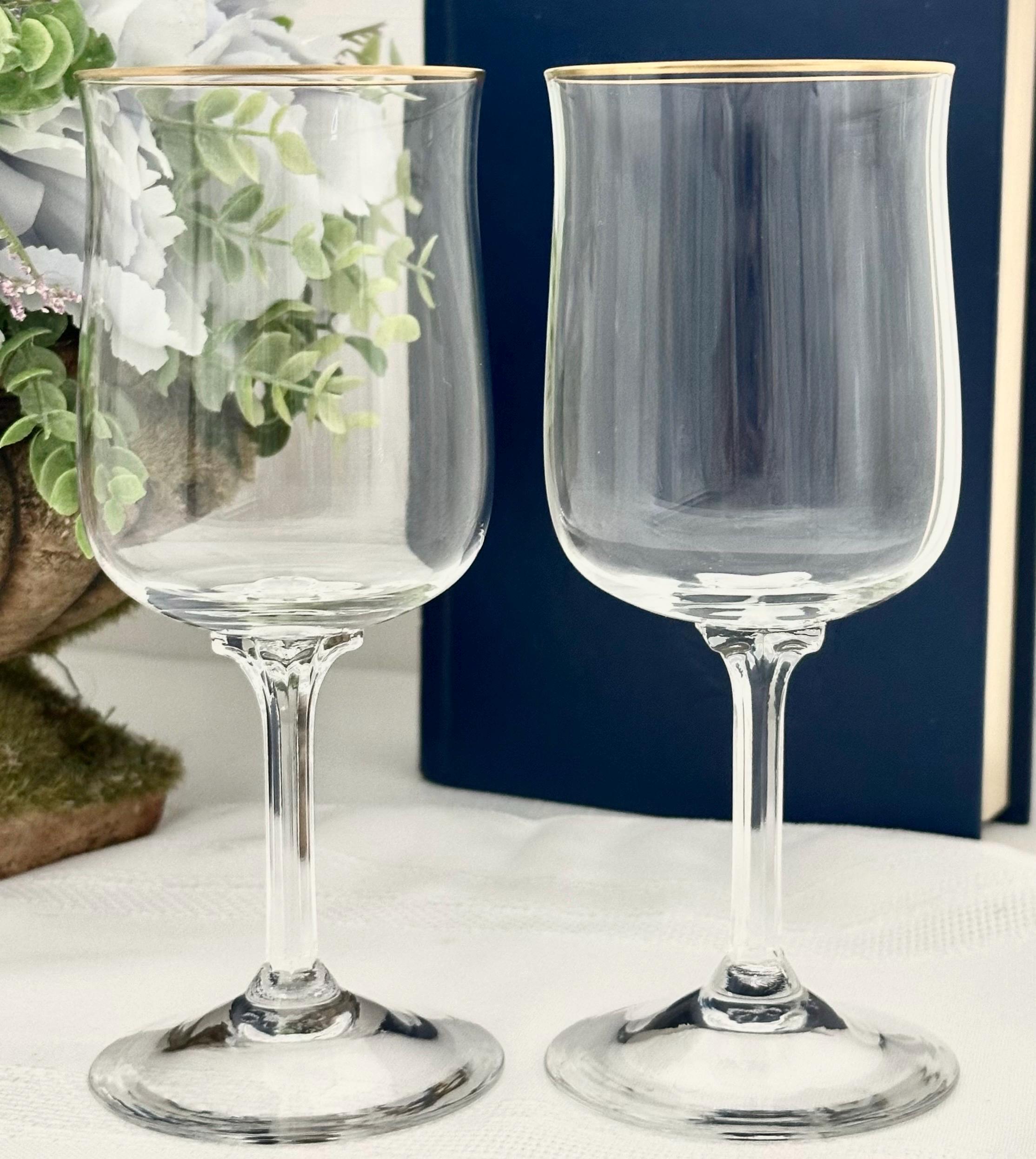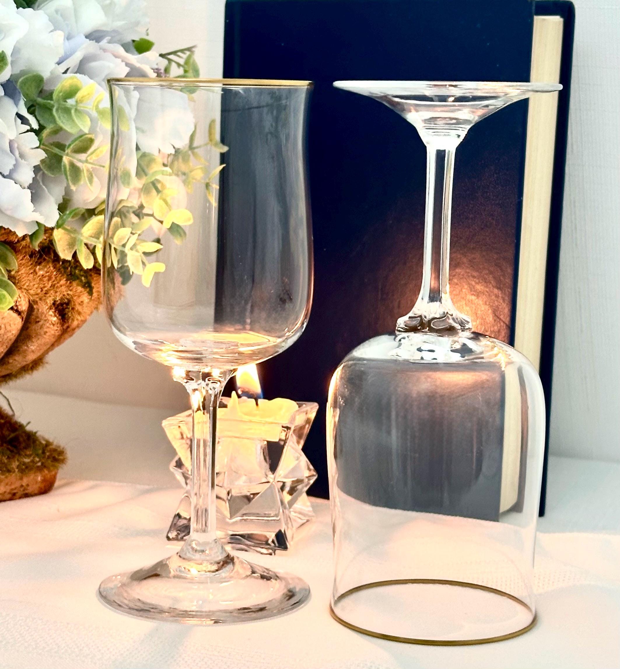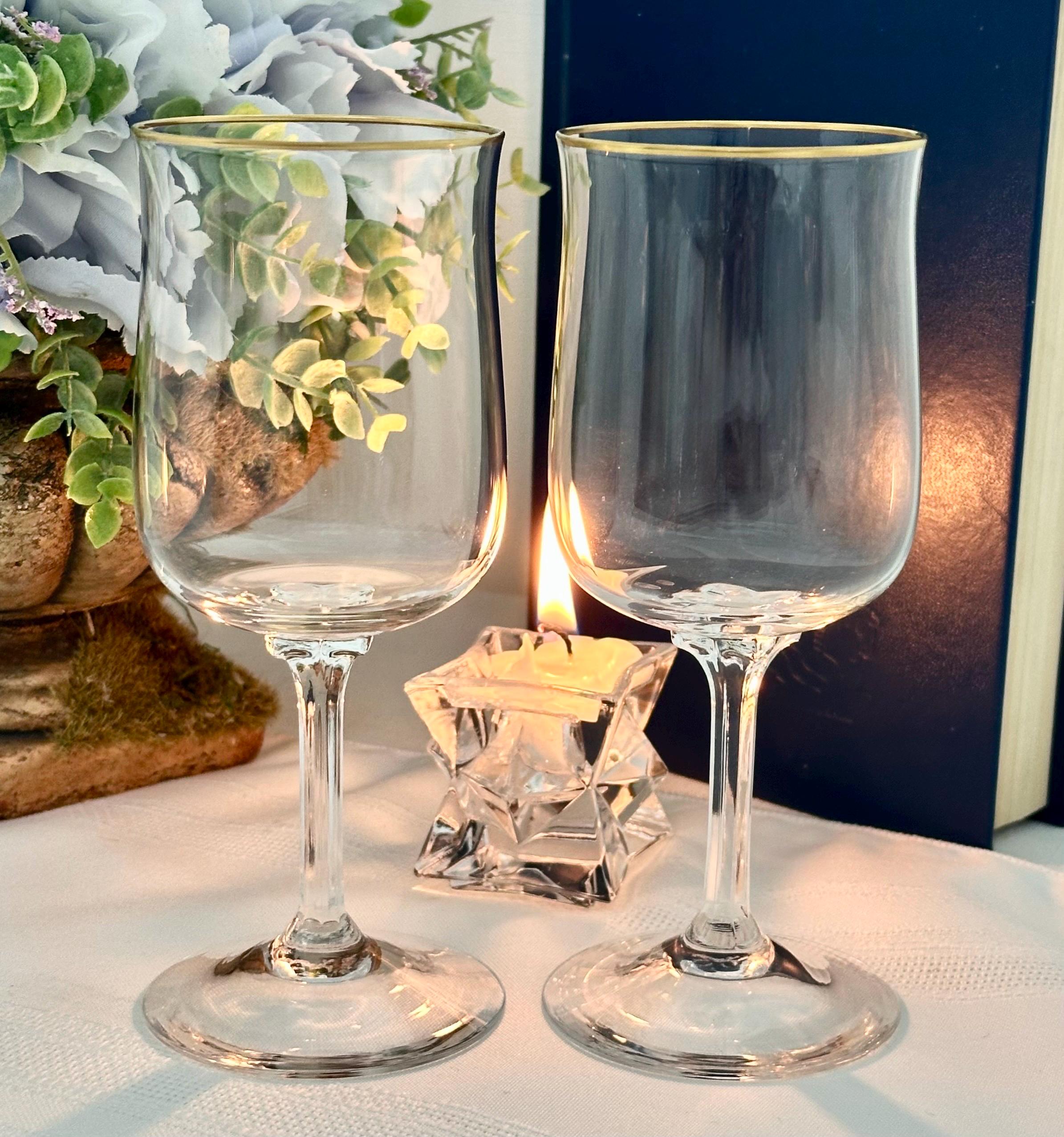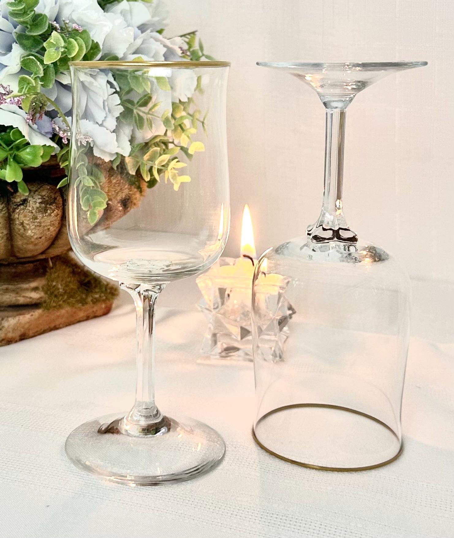 These vintage wine glasses require hand wash care to preserve the gold trim. These are in lovely condition with no chips, cracks or water staining and make for wonderful replacement glasses or to start a new collection.