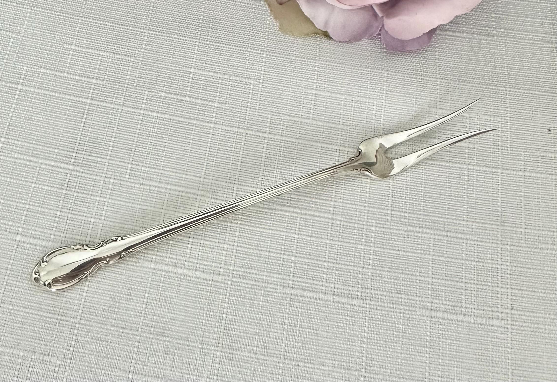 This is for 1 vintage Sterling Silver Legato Olive / Pickle Fork. This lovely silverware pattern was produced by Towle in 1962 thru 2009 and now is discontinued. This replacement flatware piece is in very nice condition, polished and ready to enjoy and add to your set!