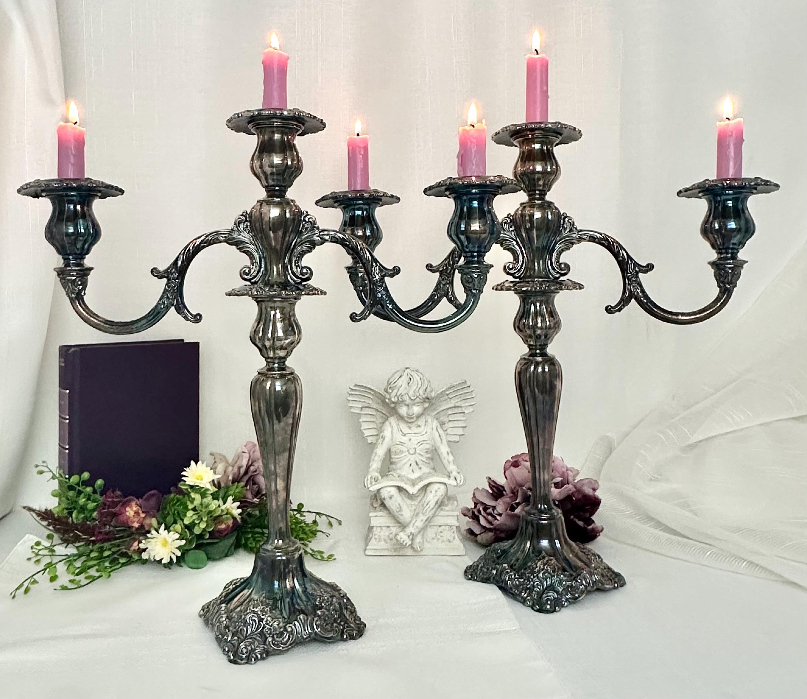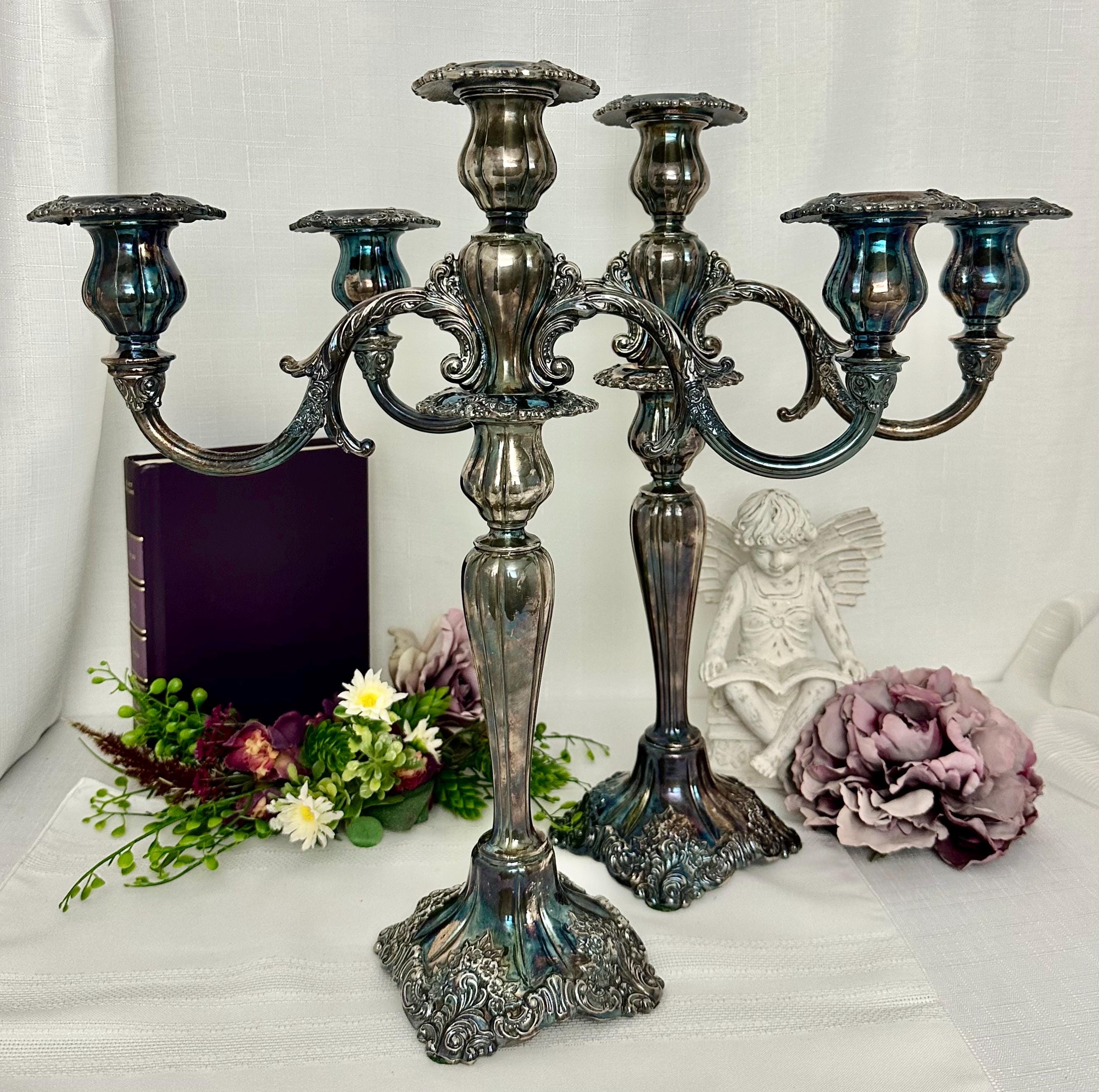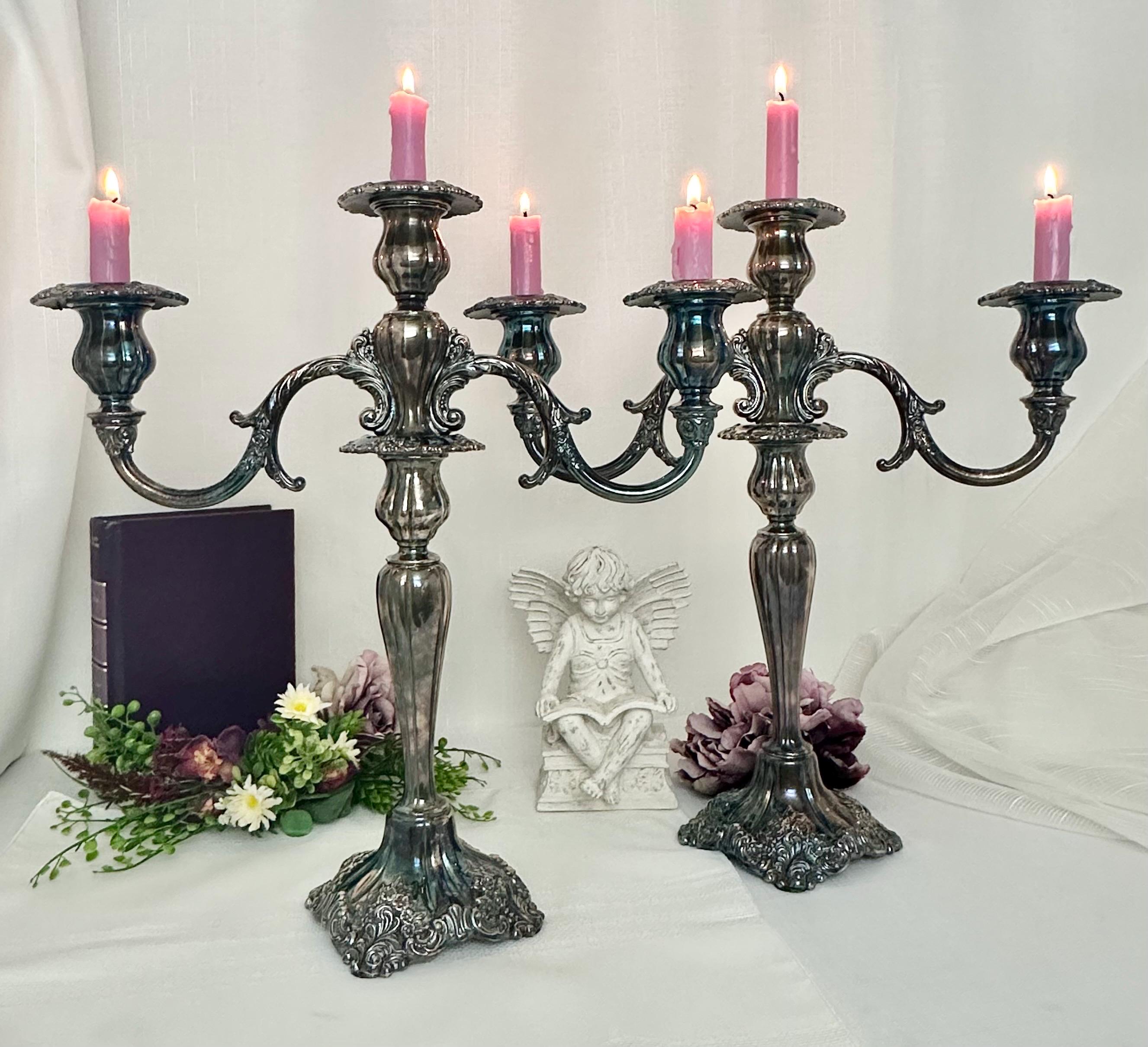 This is for a Pair of vintage Wallace Grand Baroque Silver Plate Candelabras. These large Candle Holders are elegant and stylish pieces perfect for adding a touch of sophistication to any room.