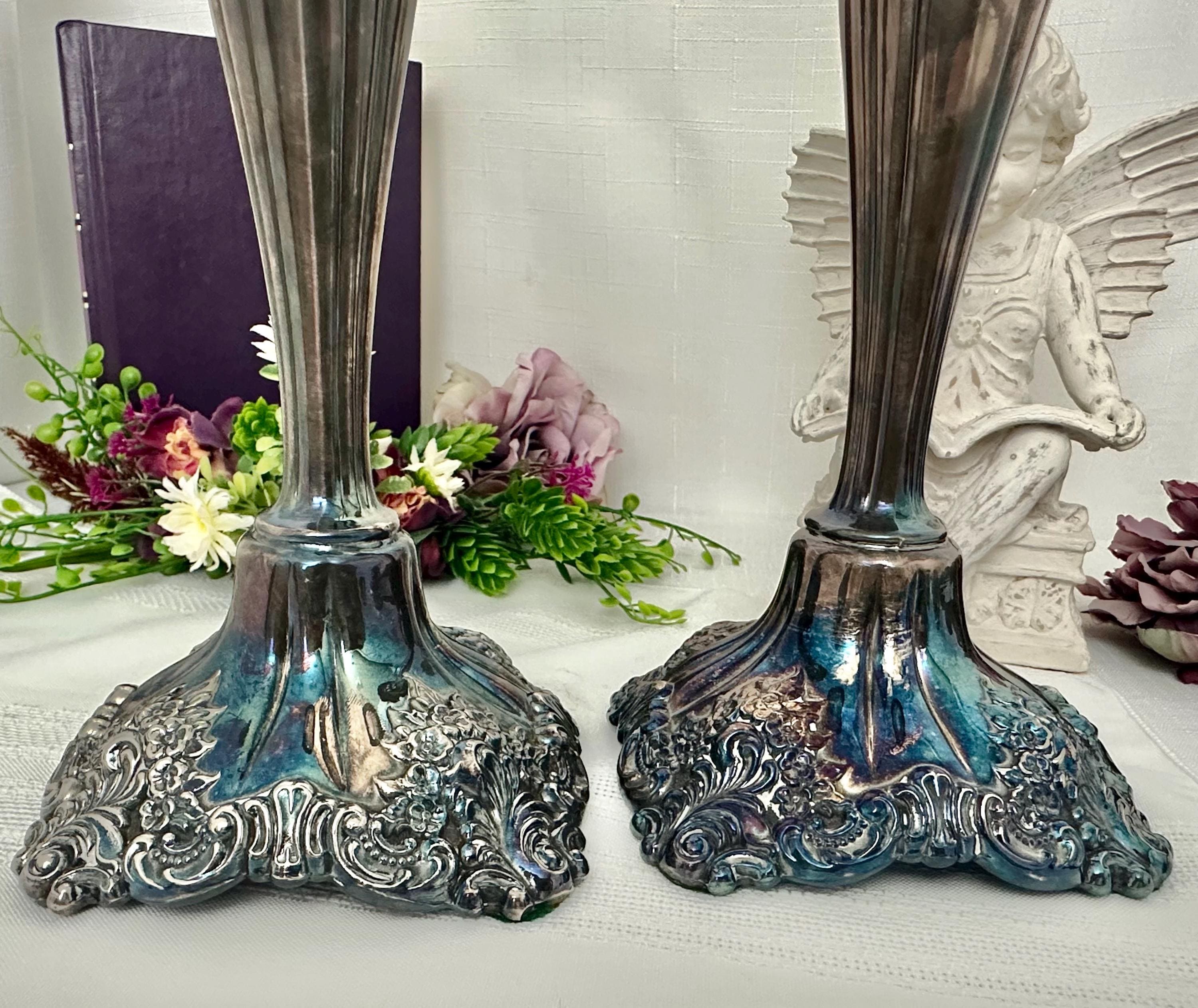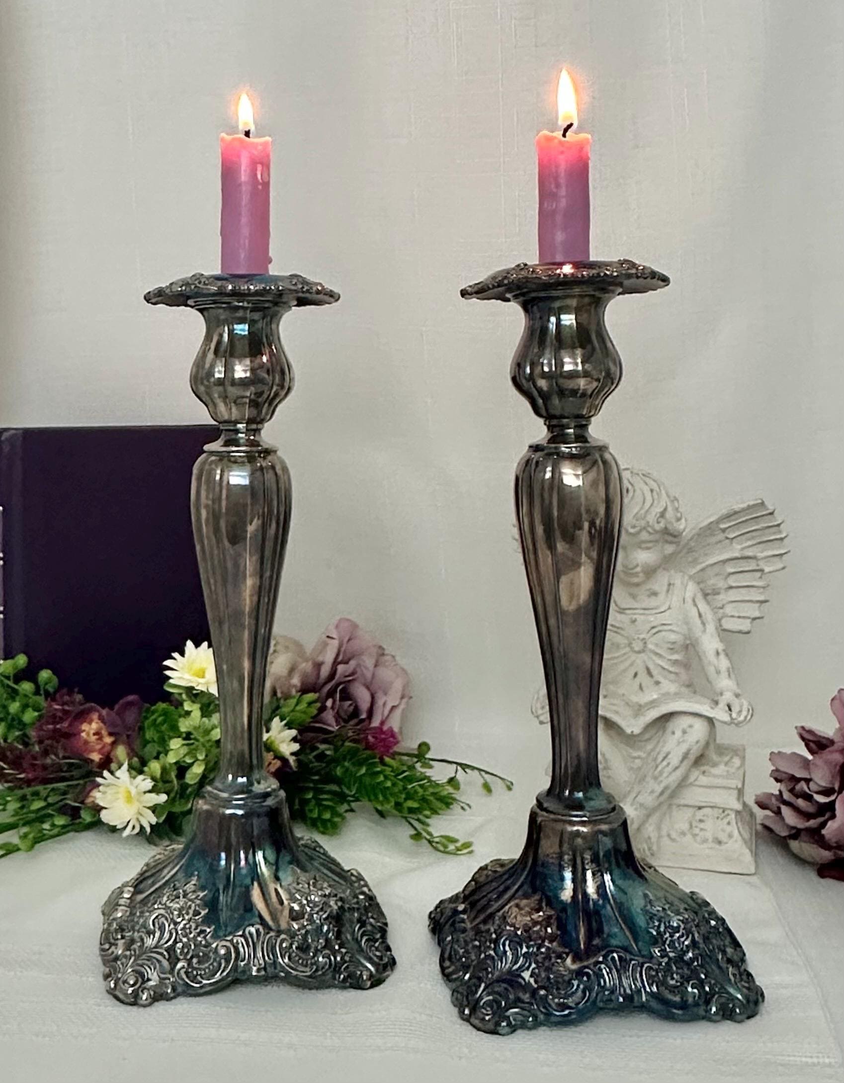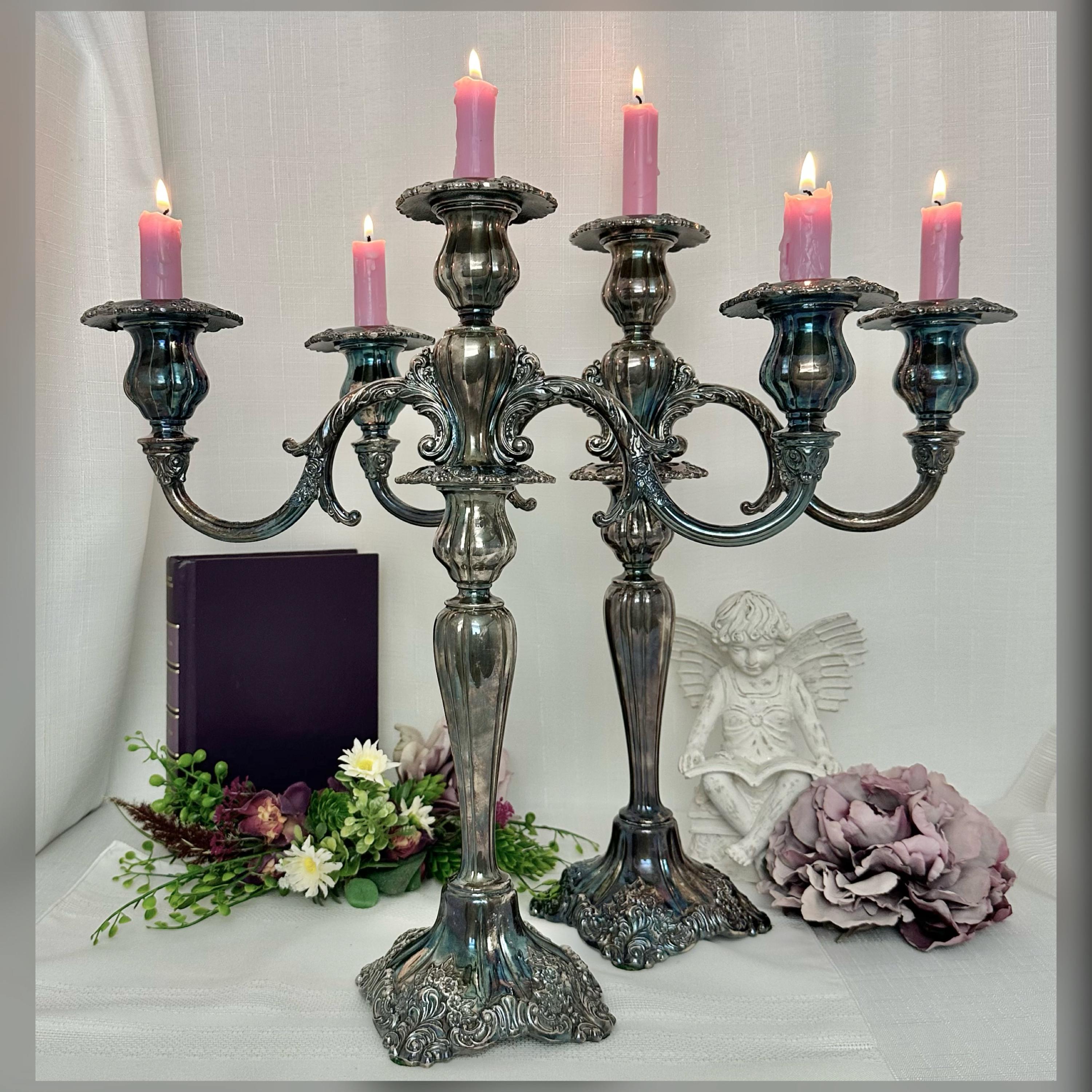 This is for a Pair of vintage Wallace Grand Baroque Silver Plate Candelabras. These large Candle Holders are elegant and stylish pieces perfect for adding a touch of sophistication to any room.
