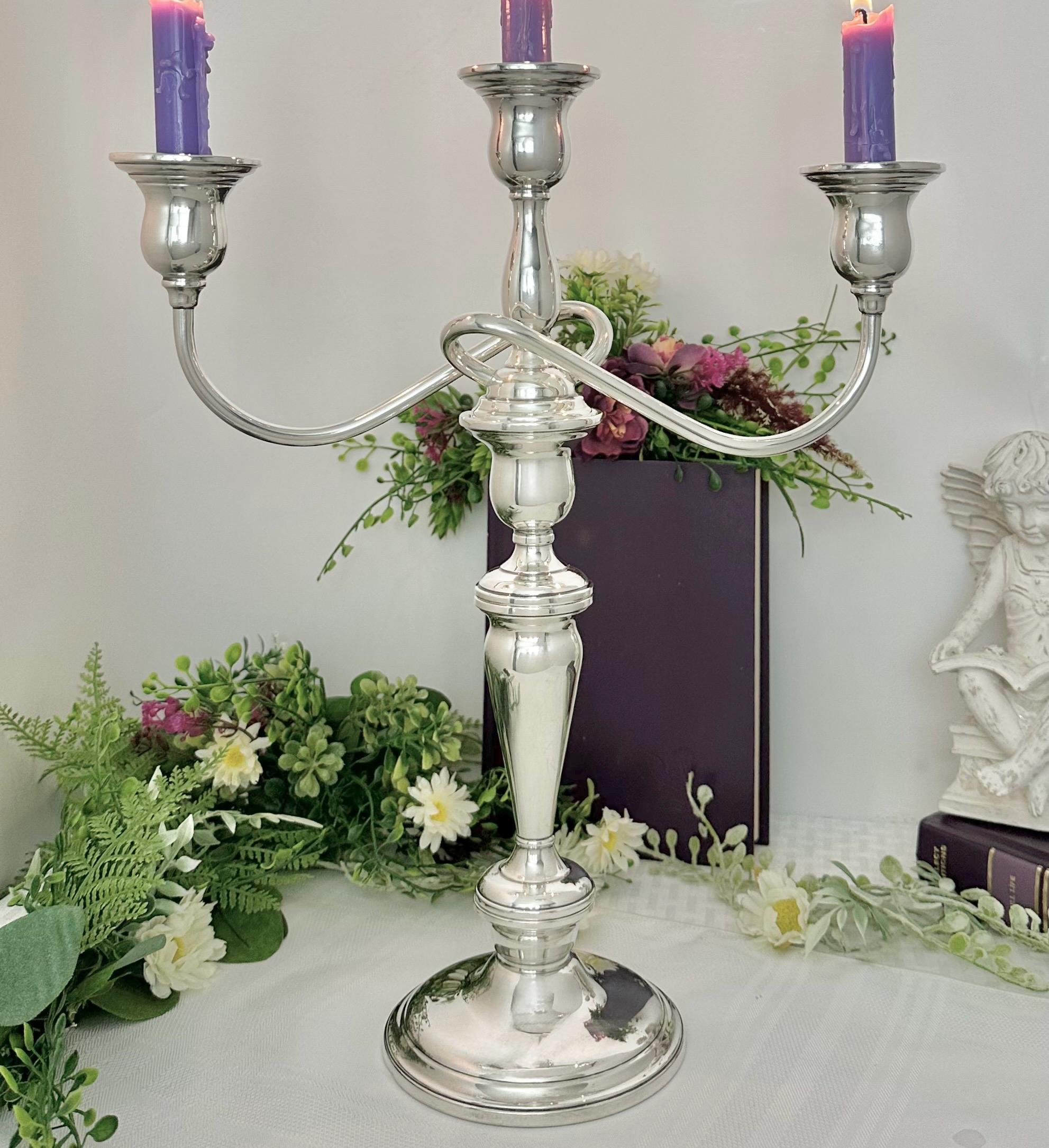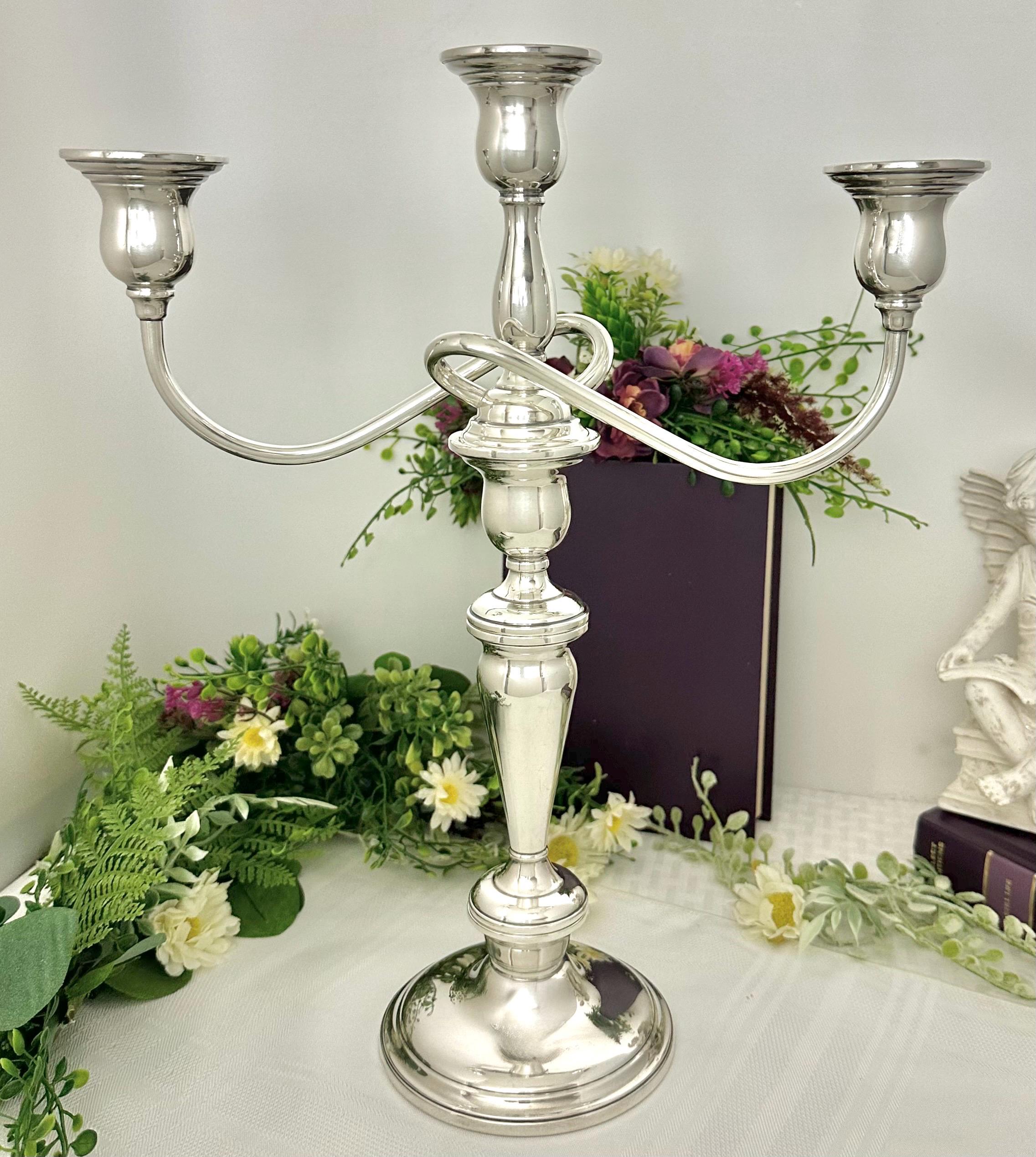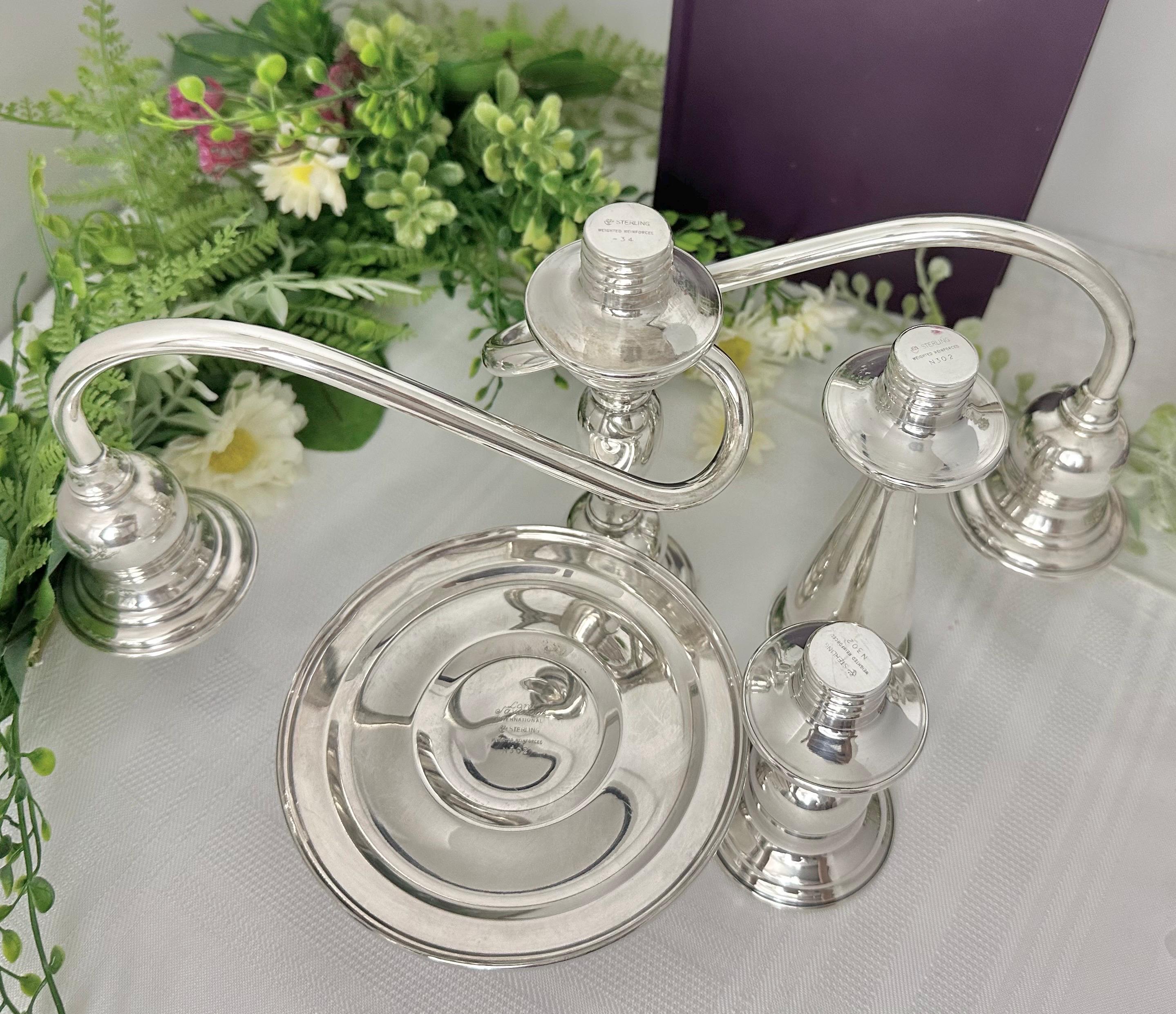 This is for a Vintage Sterling Silver Candelabras. This is from International Silver in the Lord Saybrook pattern. The cande holder is weighted and reinforced sterling silver. This is marked with the pattern number of N302.
