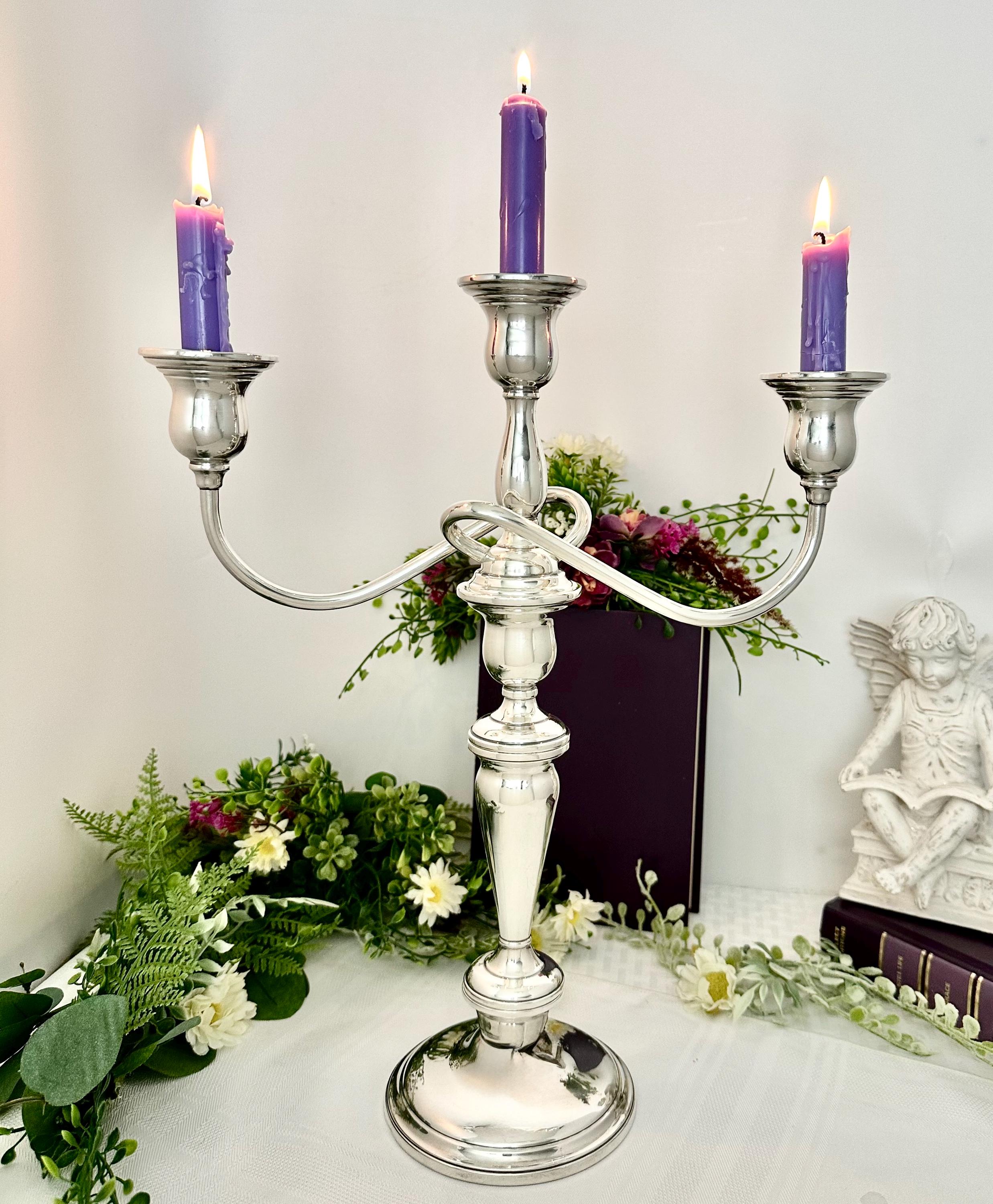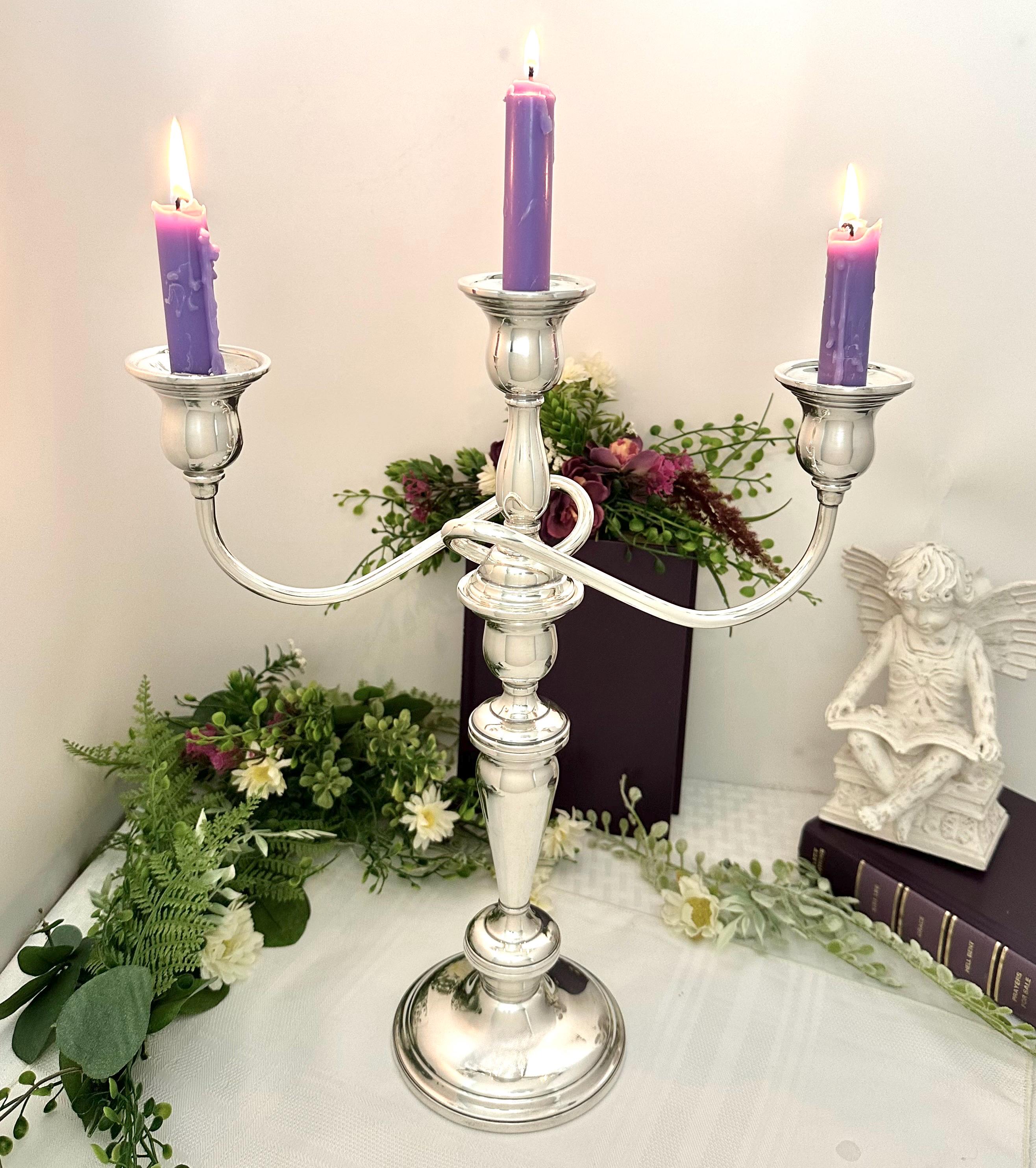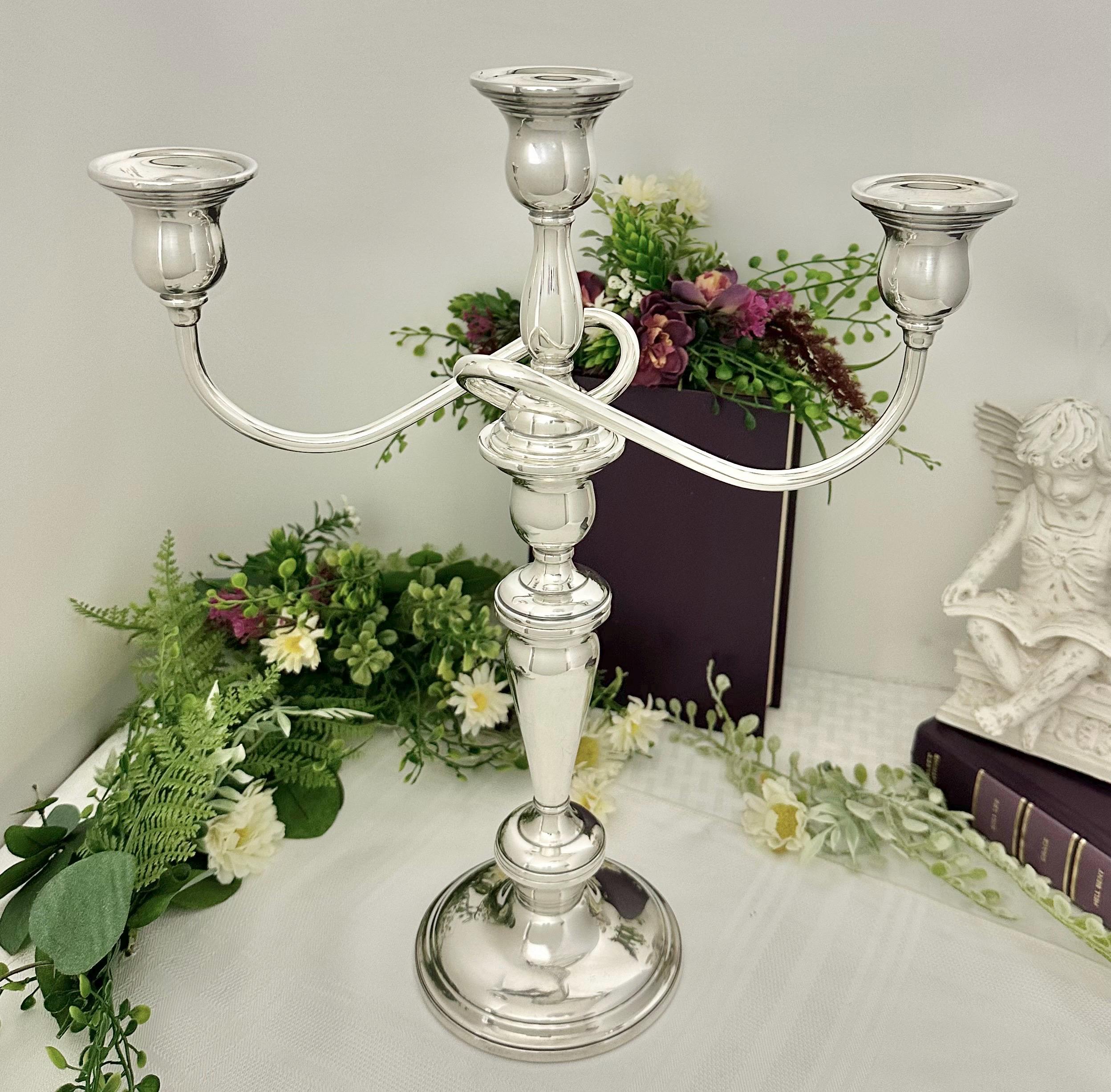 This is for a Vintage Sterling Silver Candelabras. This is from International Silver in the Lord Saybrook pattern. The cande holder is weighted and reinforced sterling silver. This is marked with the pattern number of N302.