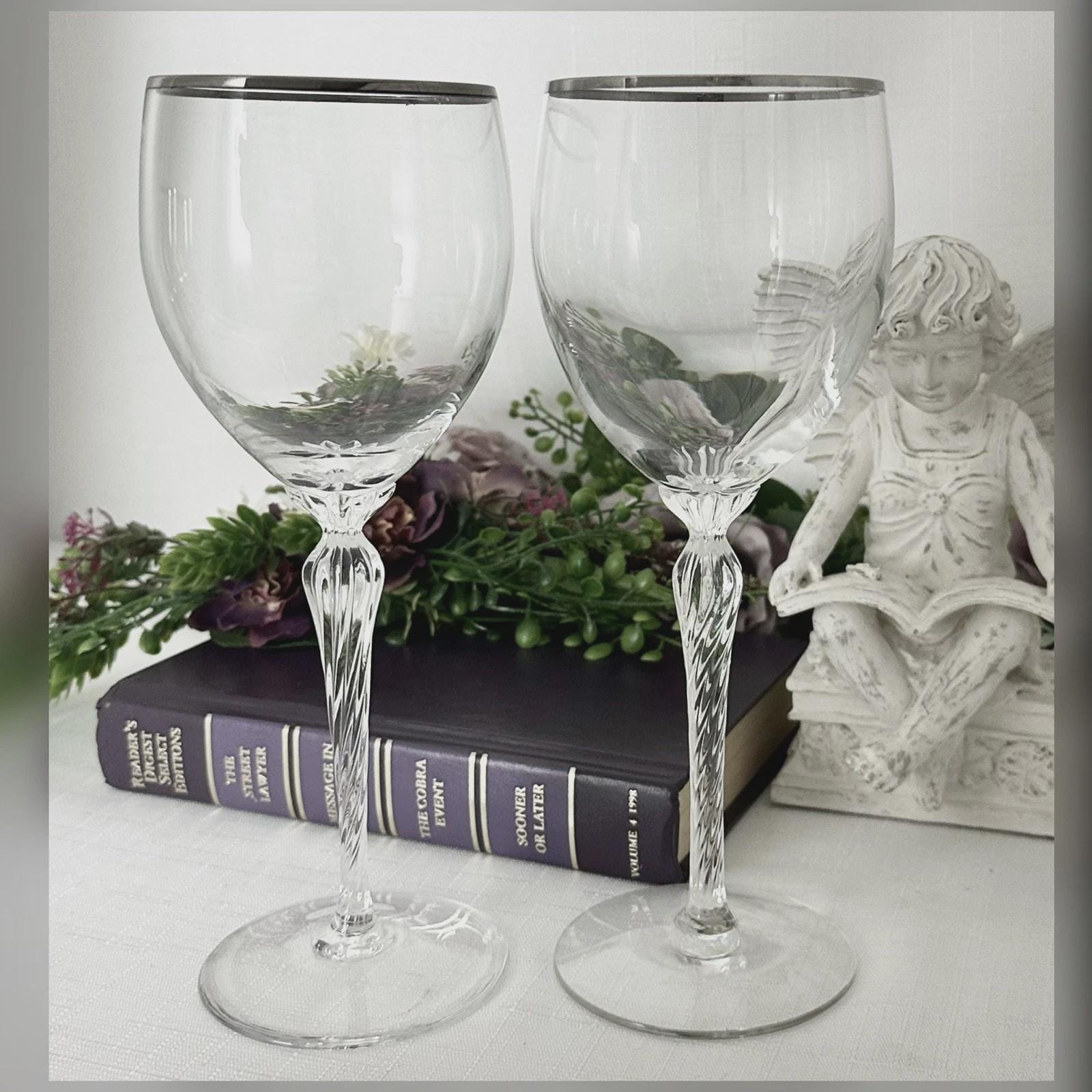 This is for a Pair of Vintage Lenox Platinum Madison Water glasses. These glasses measure: 8.5 inches tall with a diameter of 3 inches.