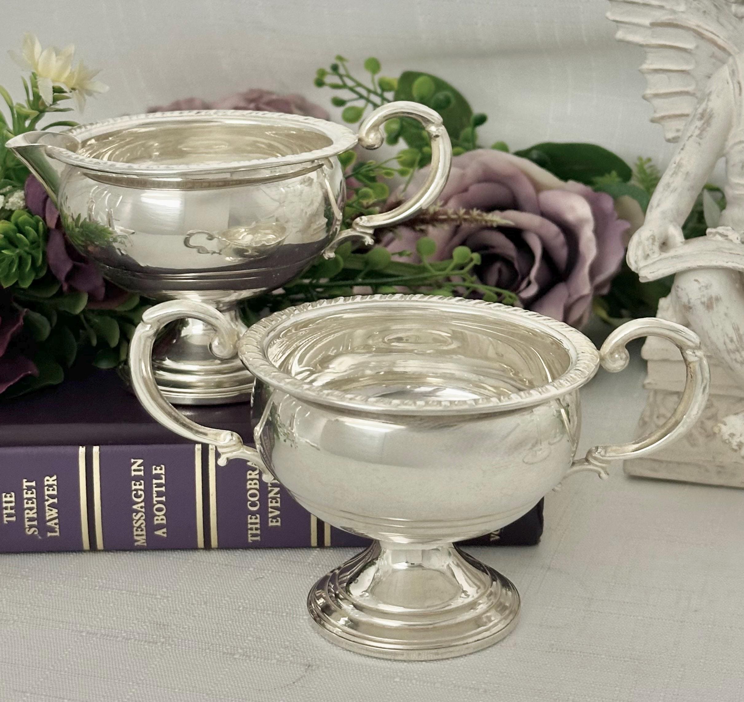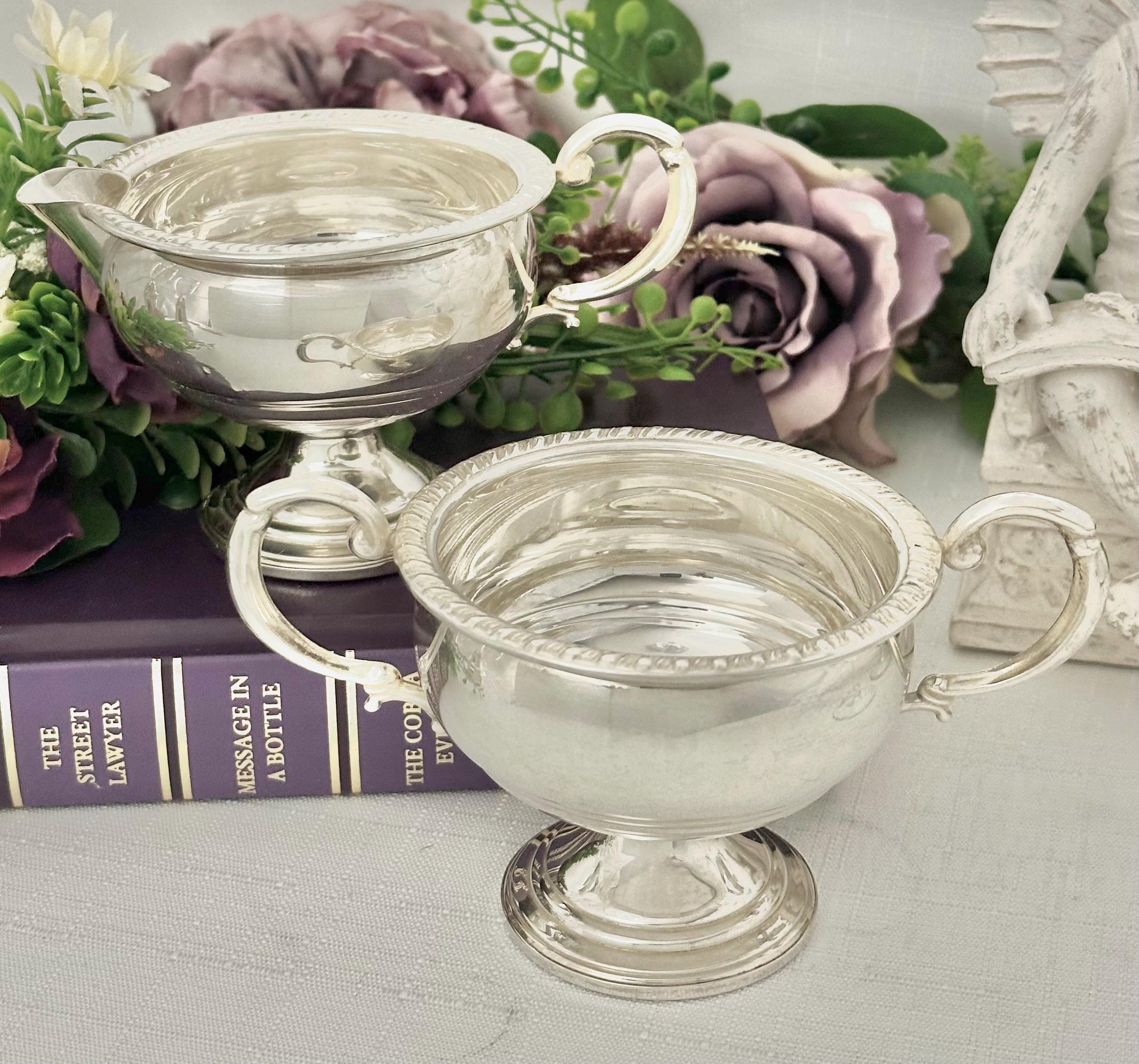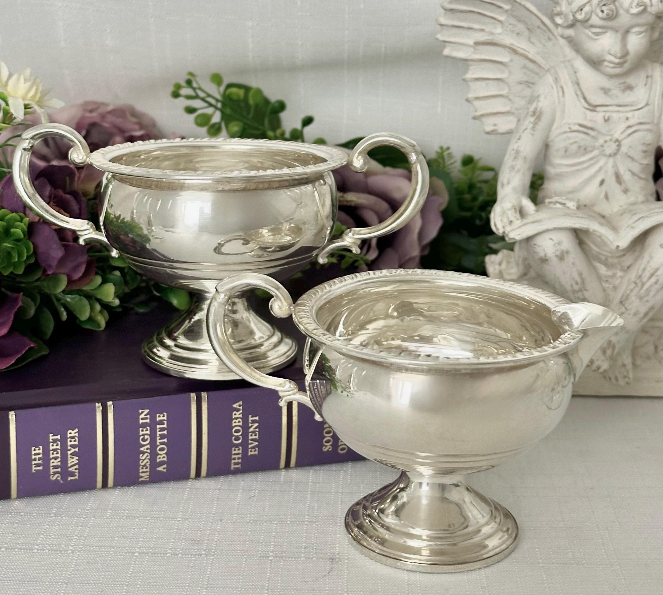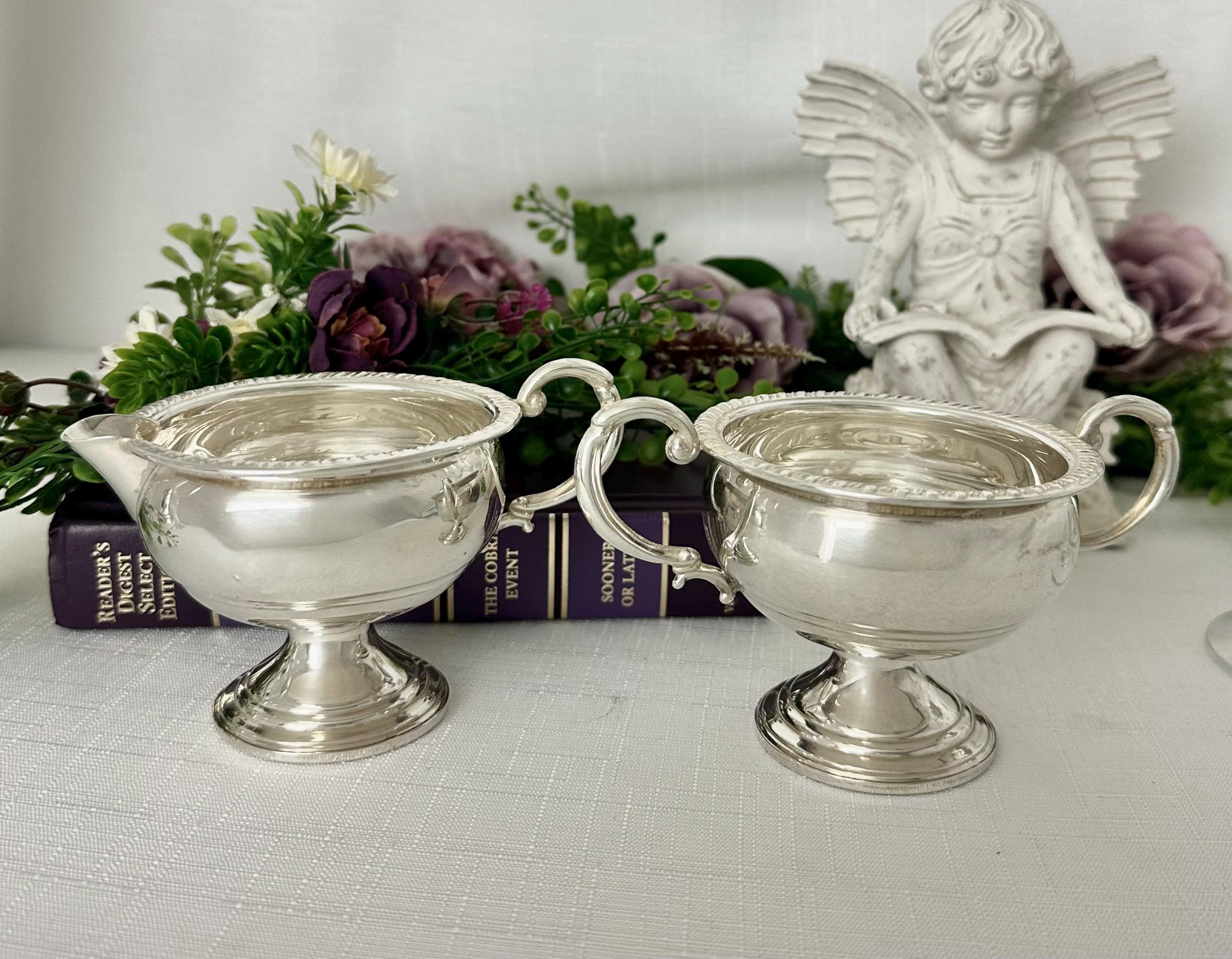 This is for a vintage Garden Silversmith Sterling Cream and Sugar Set. These are a luxurious addition to any dining table. Made from sterling silver and weighing 191 grams, this set exudes elegance and sophistication. The bases of each are weighted for stability.