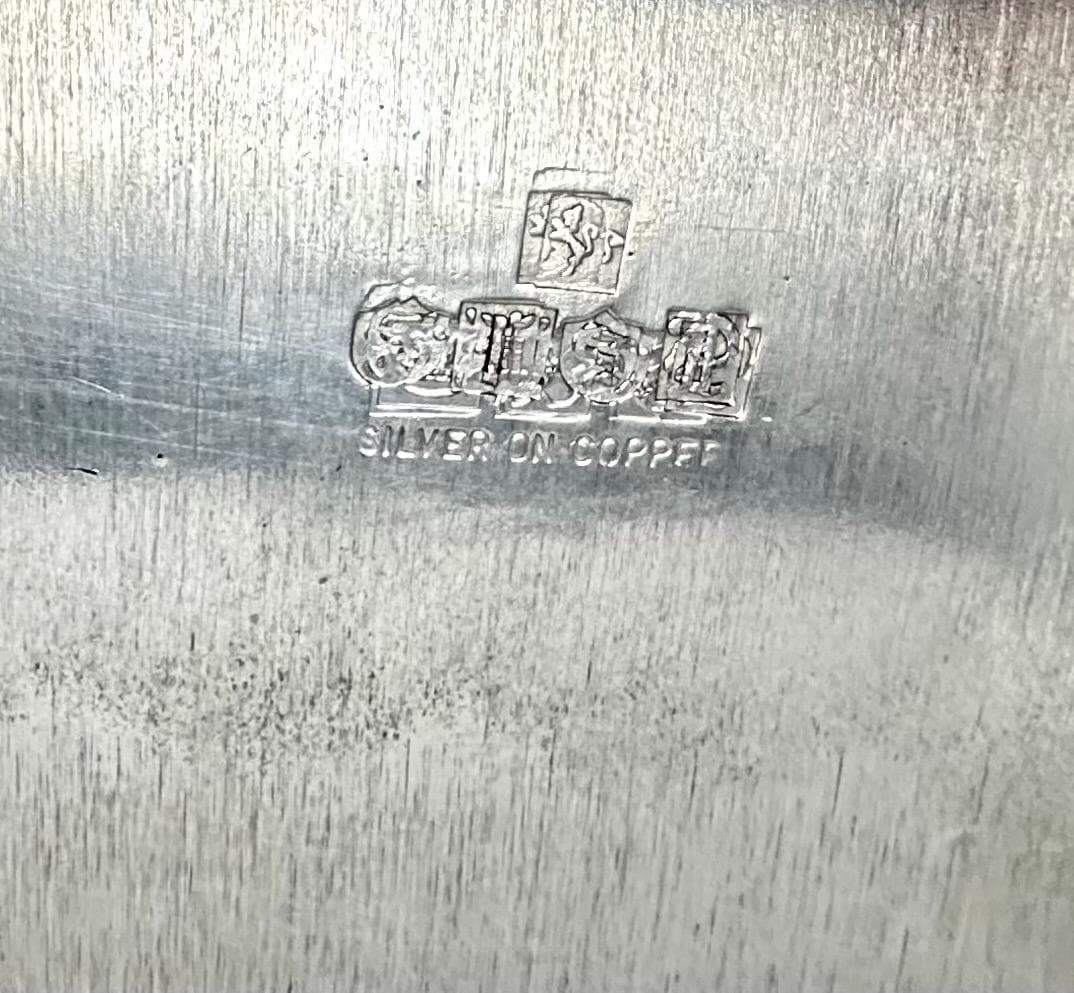 This is in lovely condition with noted small surface scratches on the center and small areas of worn silverplate on the raised rim areas and thus discounted for the issues.