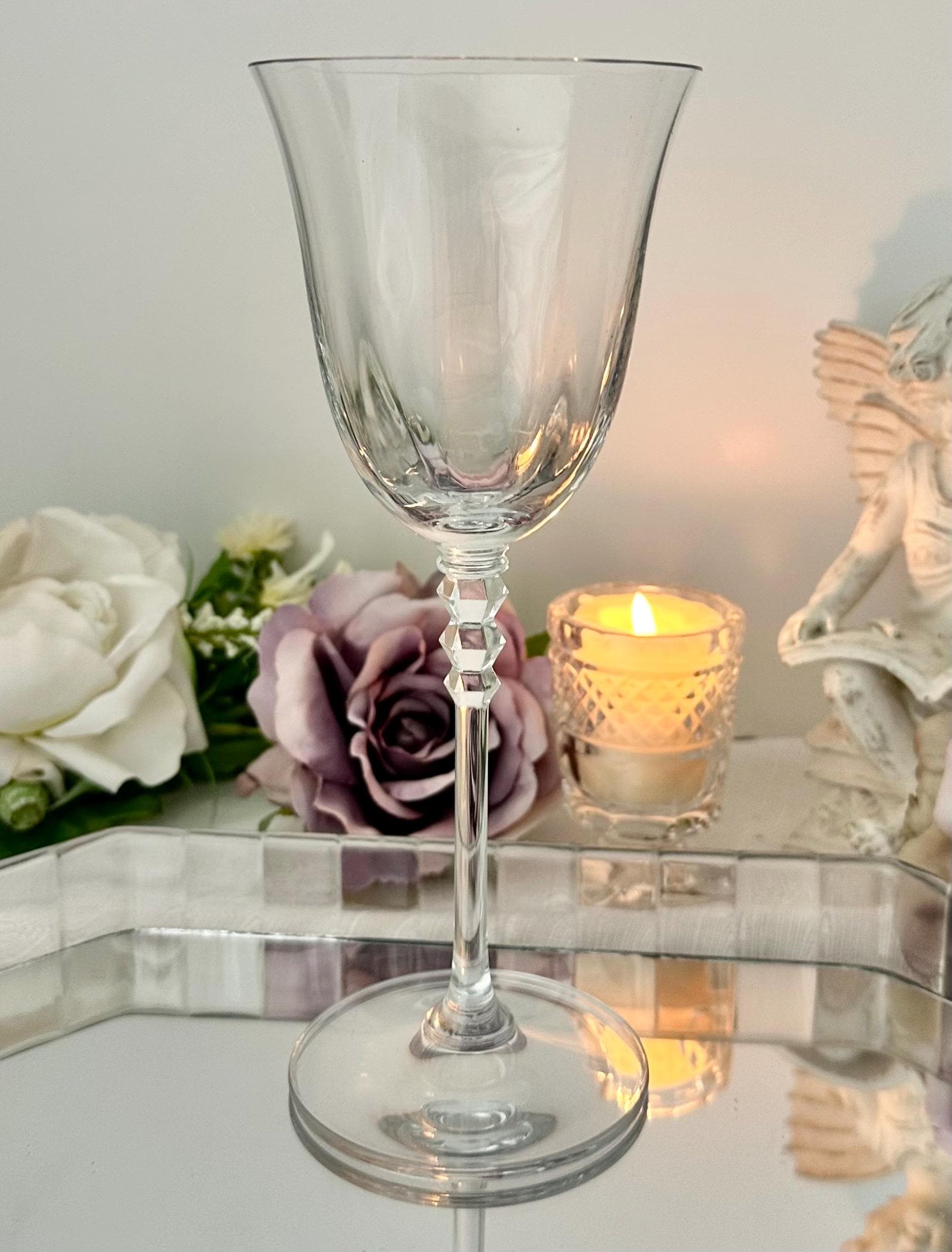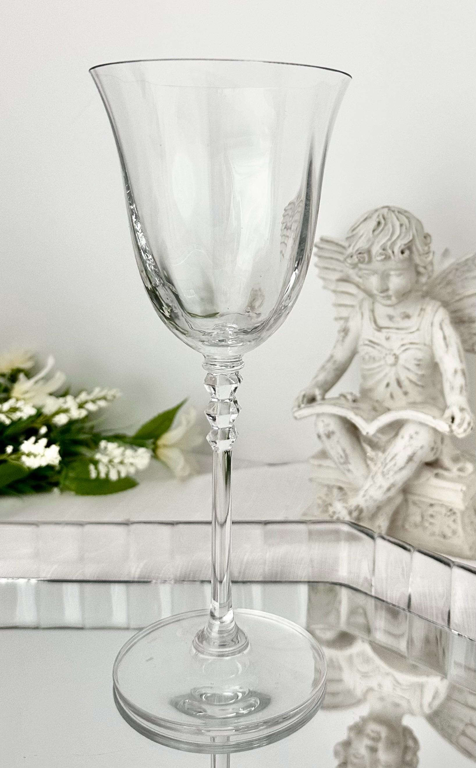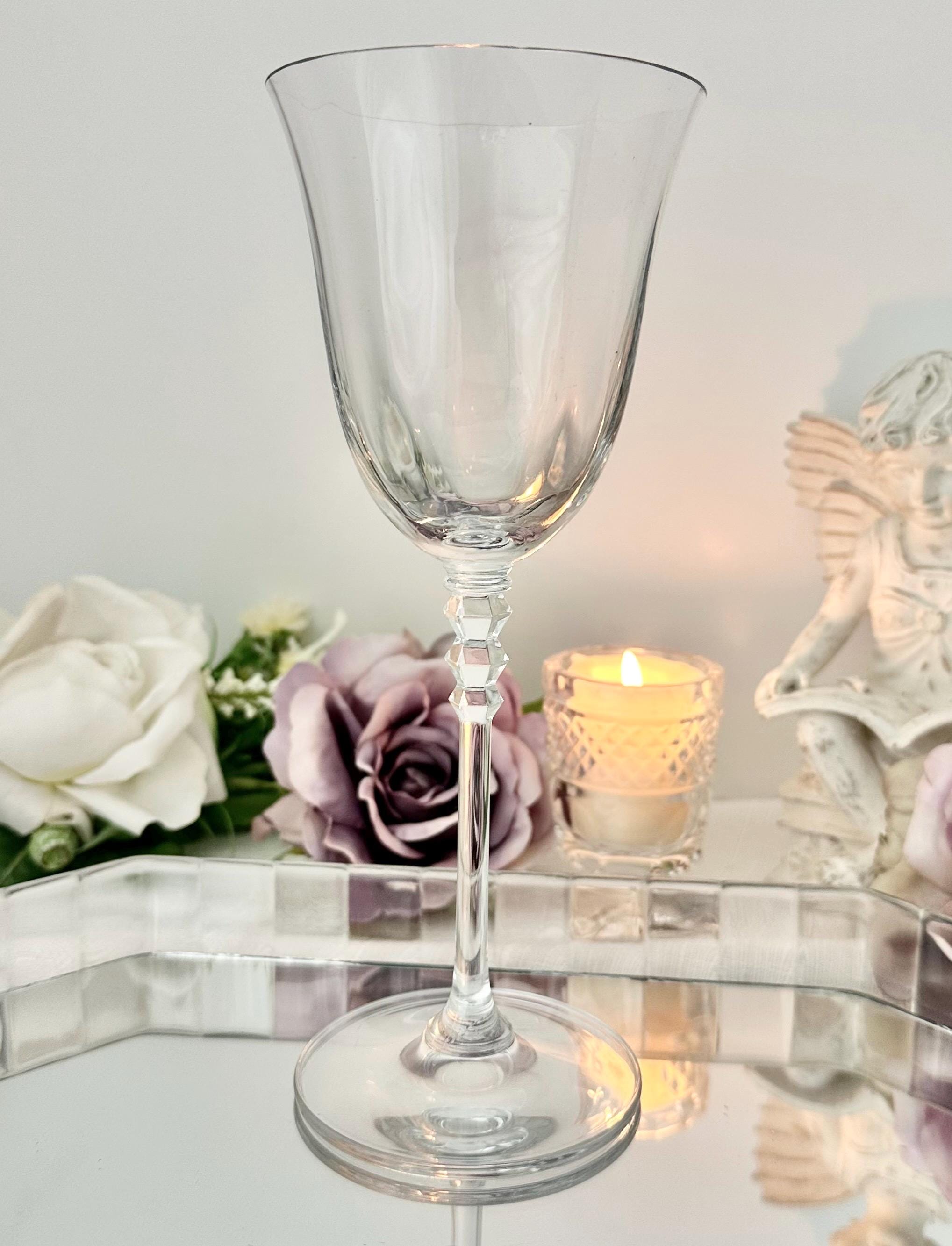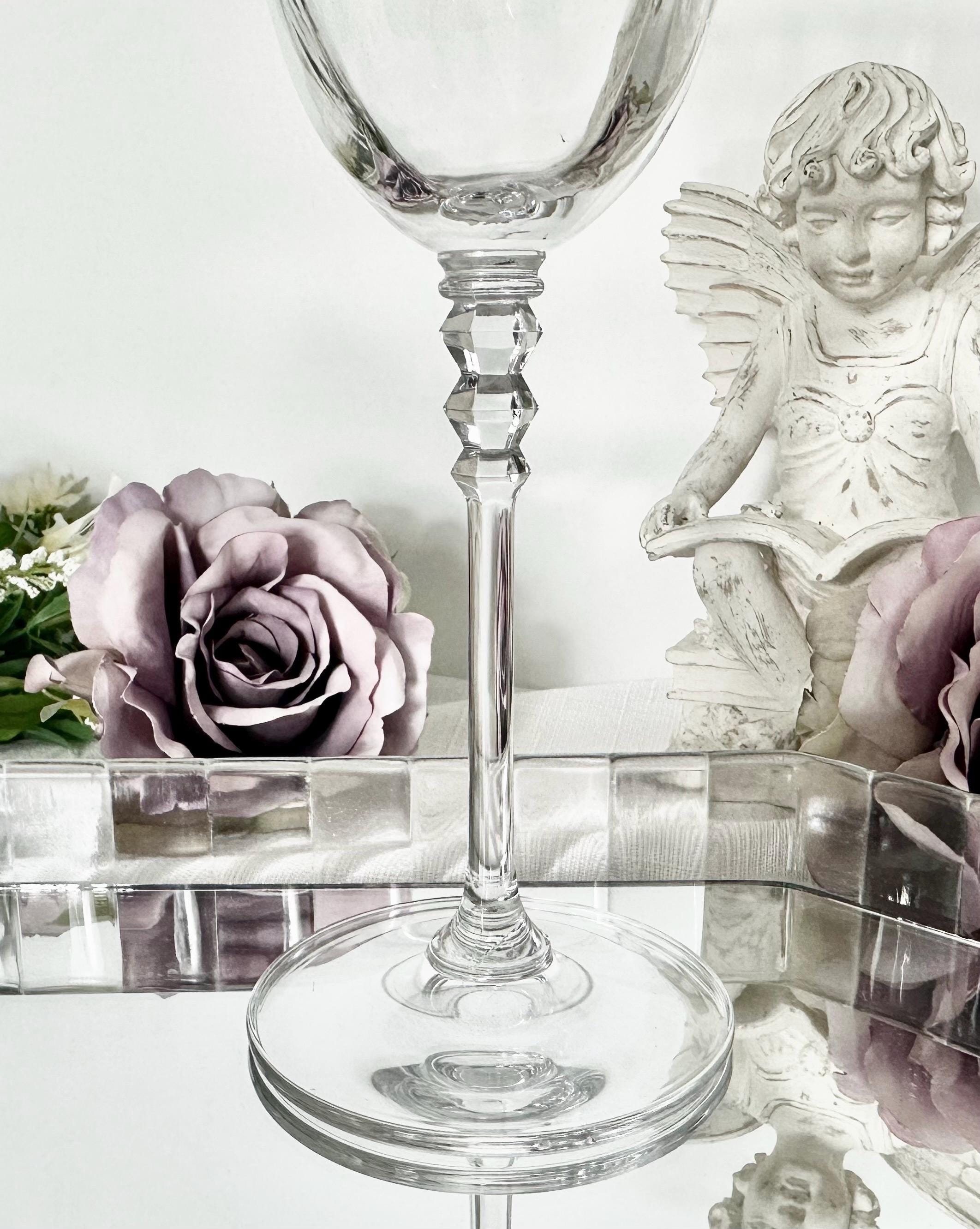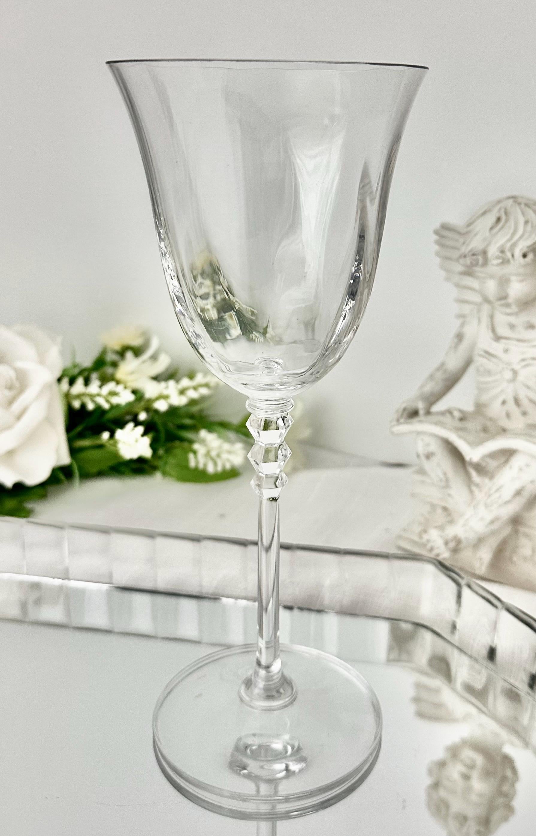 This is for a 1 Mikasa Sonnet Water Glass (Newer) with an Optic bowl and decorated stem. This measures 8.25 inches tall x 3 3/8 inch diameter and is blown glass.