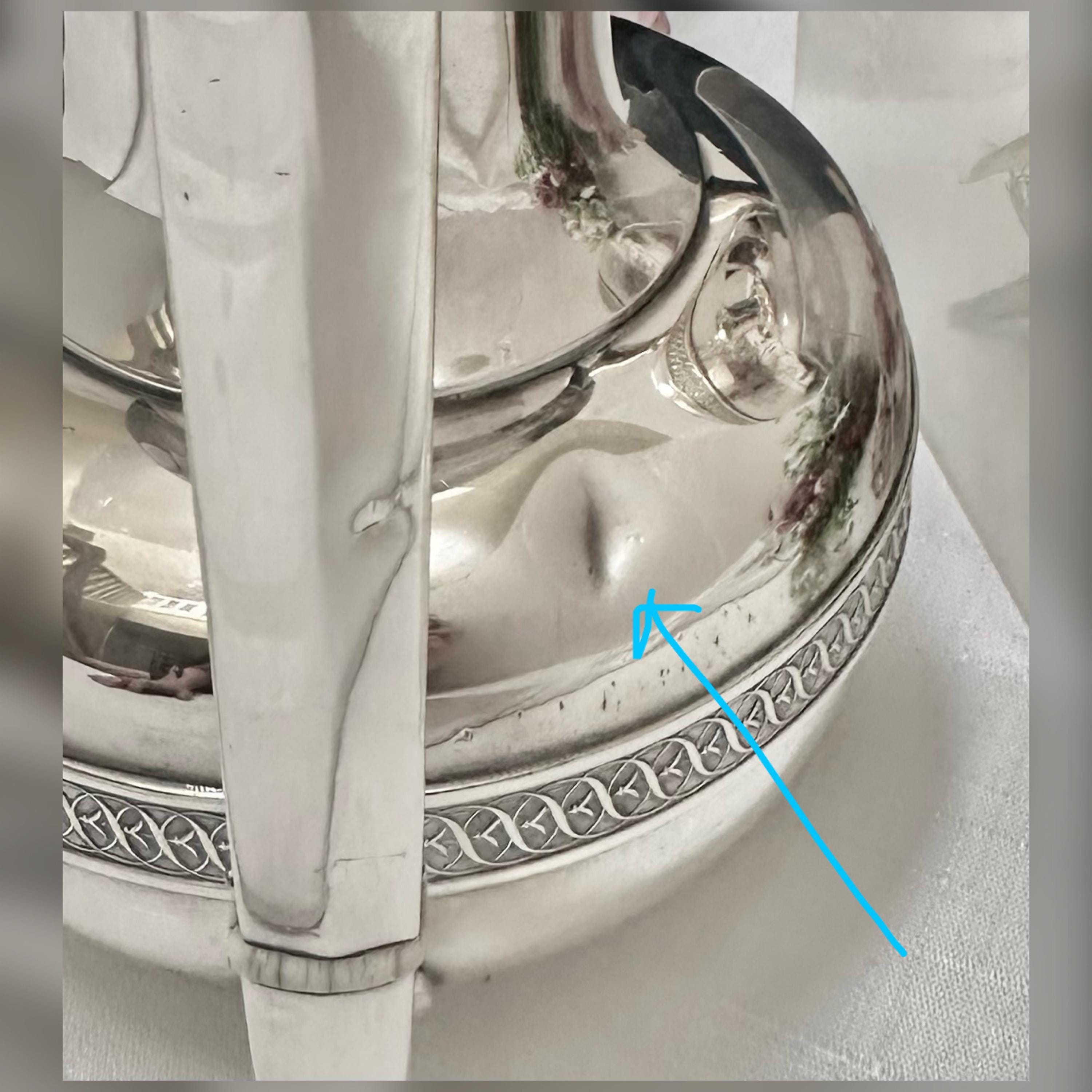 **Note pics to see coffee pot has a dent near the handle and there are other pin sizes dents else where along with some dents on the handle of the tilting tea pot and one other, nothing that I say is unusual due to age and shown in the pictures!