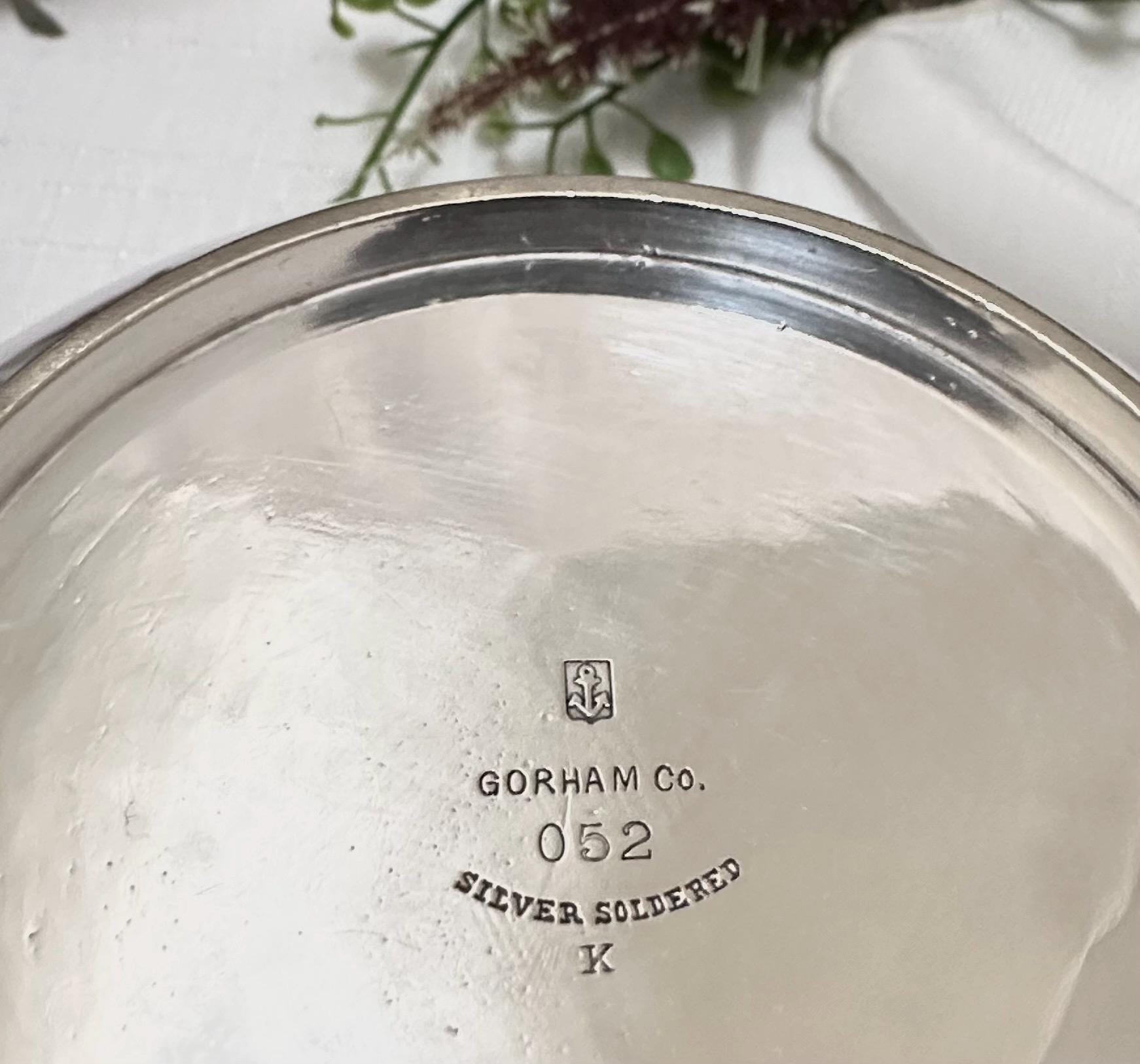This is for an Antique Monogrammed Gorham Silver Soldered Tea Set. This is for a stunning 7-piece Victorian / Edwardian Era tea set from the 1890s. Made of silverplate and marked with the Markers mark, name, silver soldered and number 052 on the foot of the pieces.
