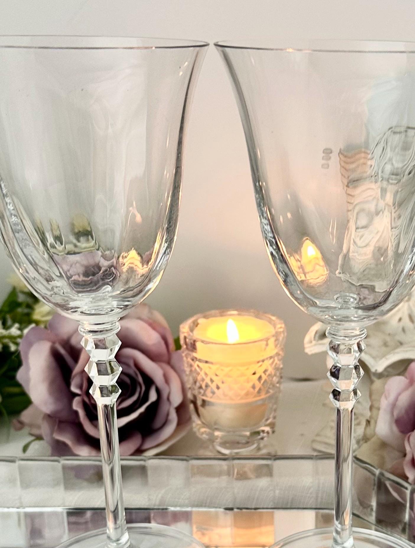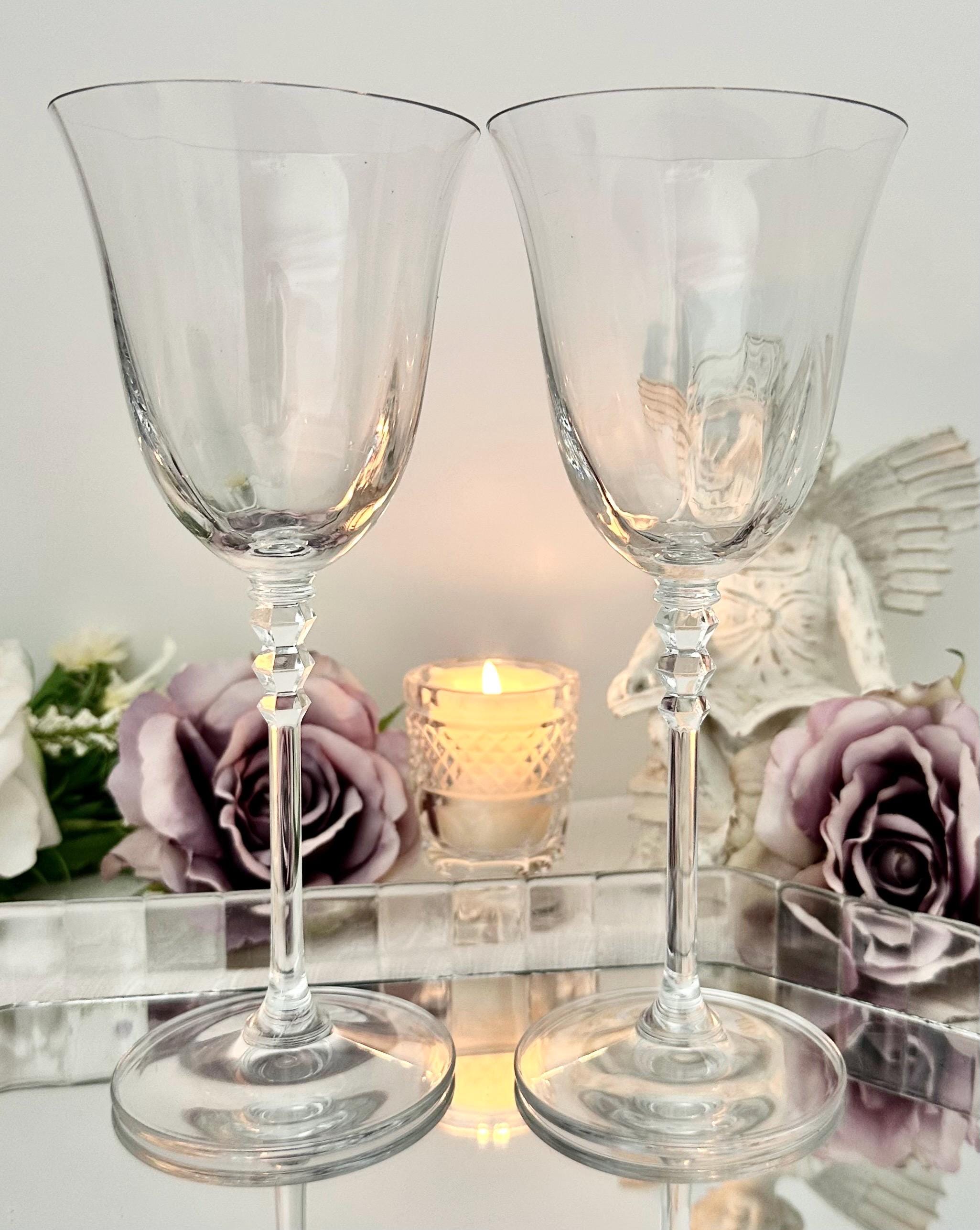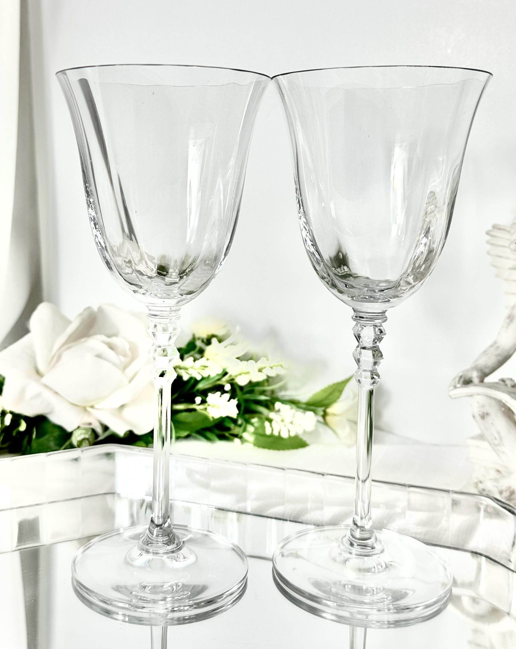 This is for a pair of Mikasa Sonnet Water glasses (Newer) with an Optic bowl and decorated stem.
