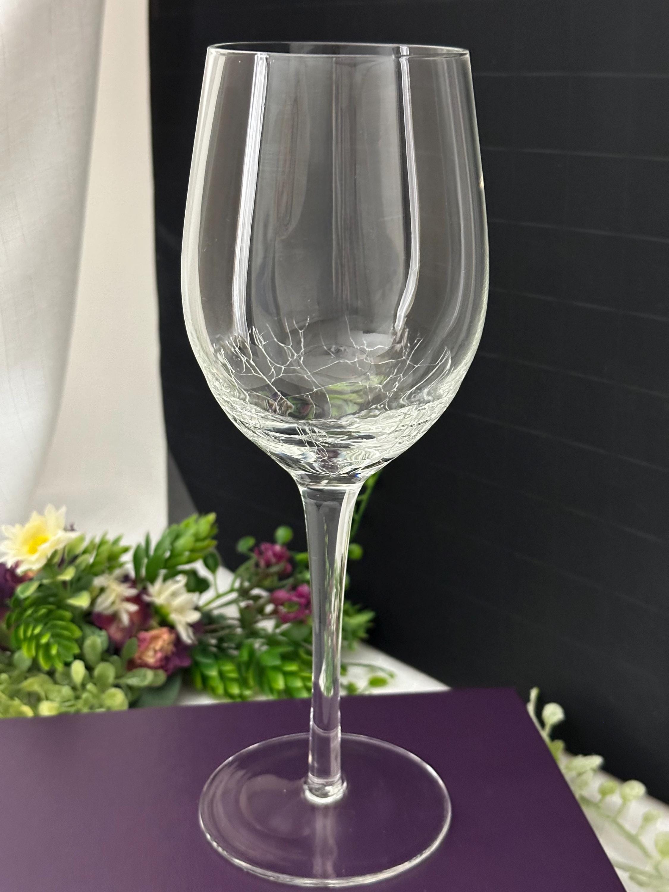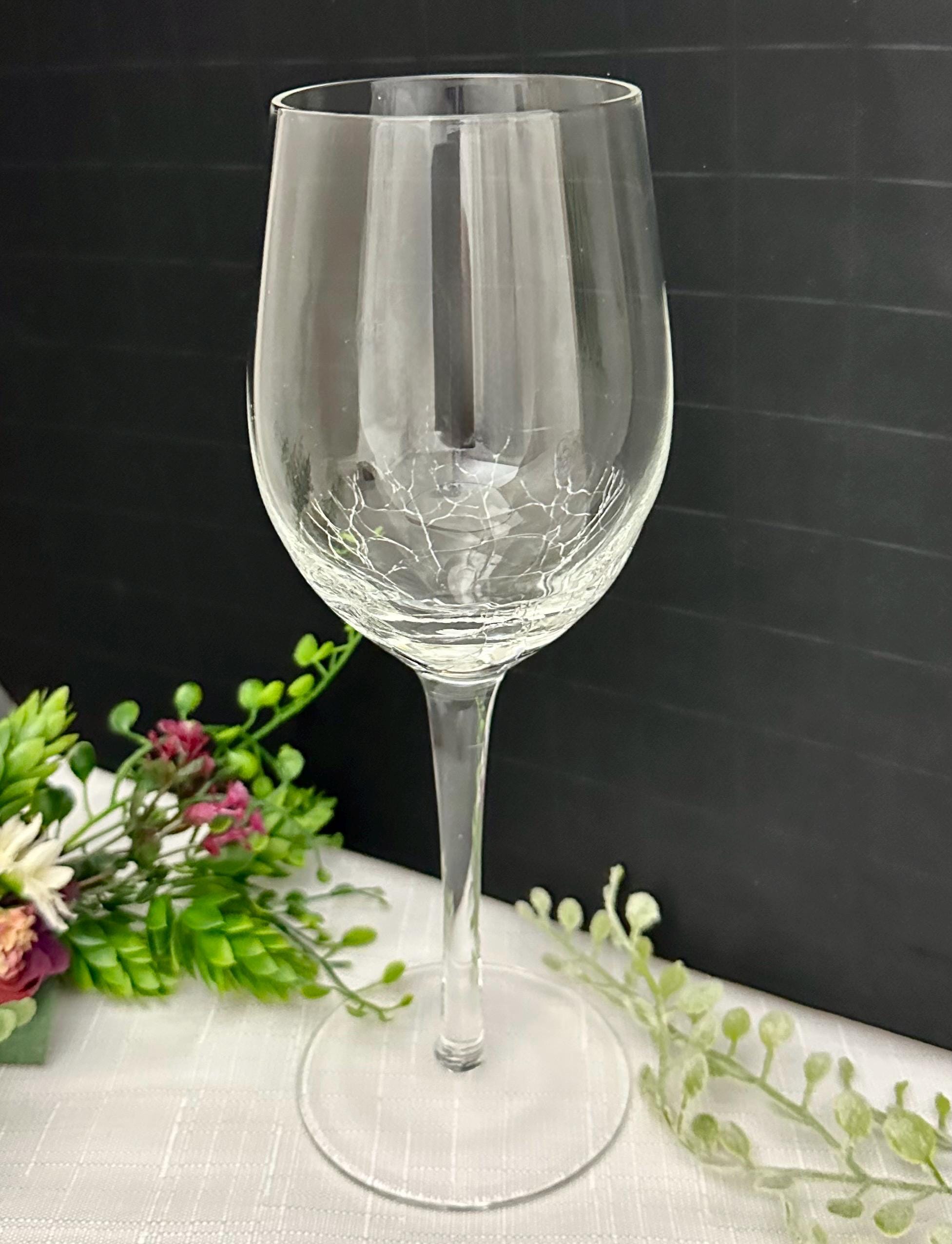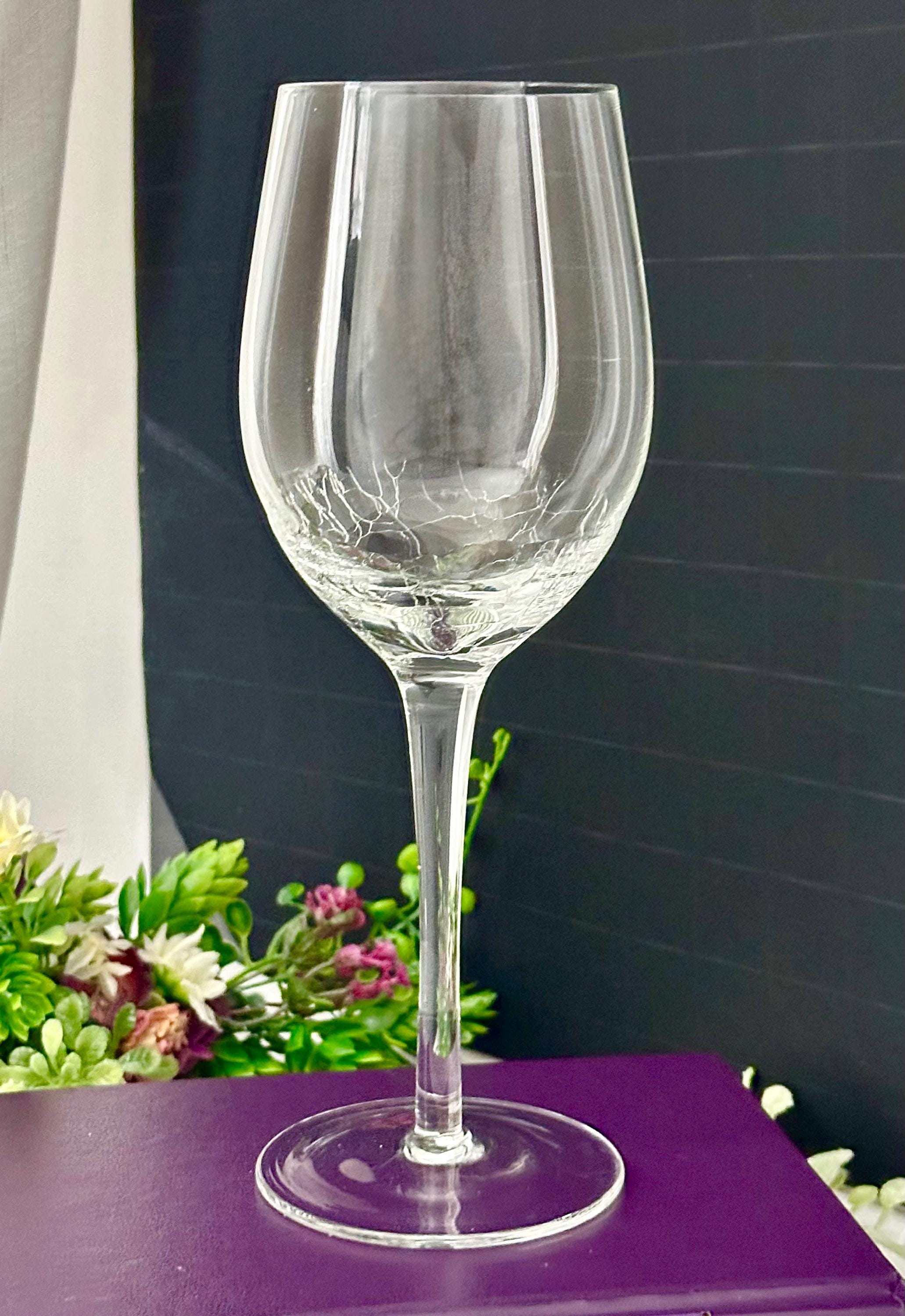 This is for 1 clear Pier 1 Crackle White Wine Glass. This is a stylish and contemporary addition to any barware collection. With a round shape and stemmed design, this 8 7/8" white wine glass features a clear color with a crackled glass texture, adding a unique touch to your table setting. This holds 12 Oz of liquid.