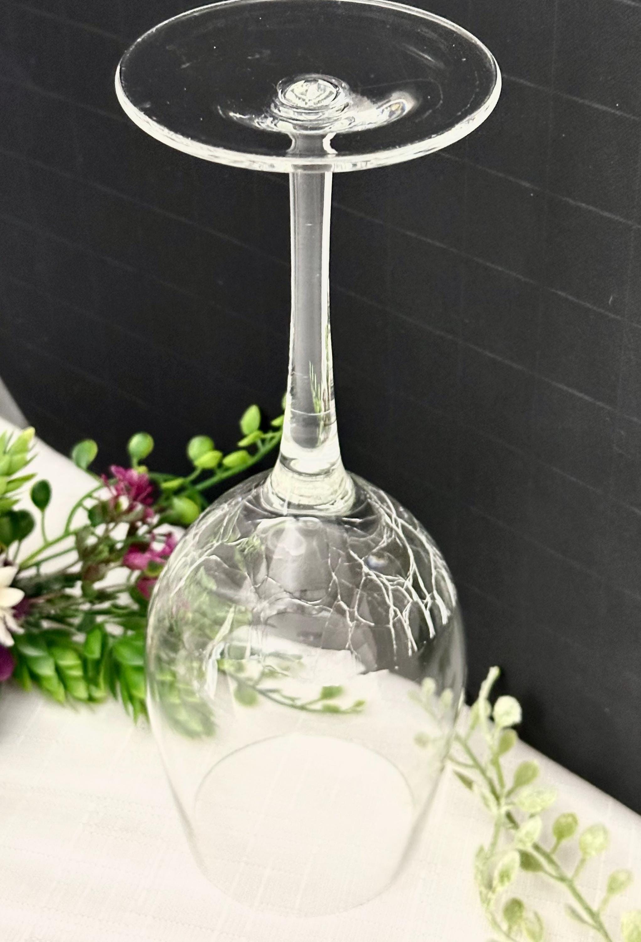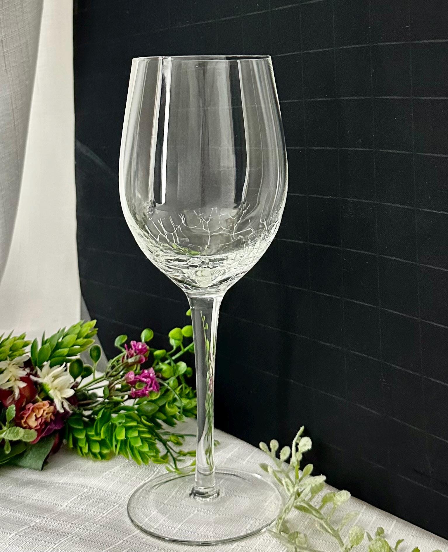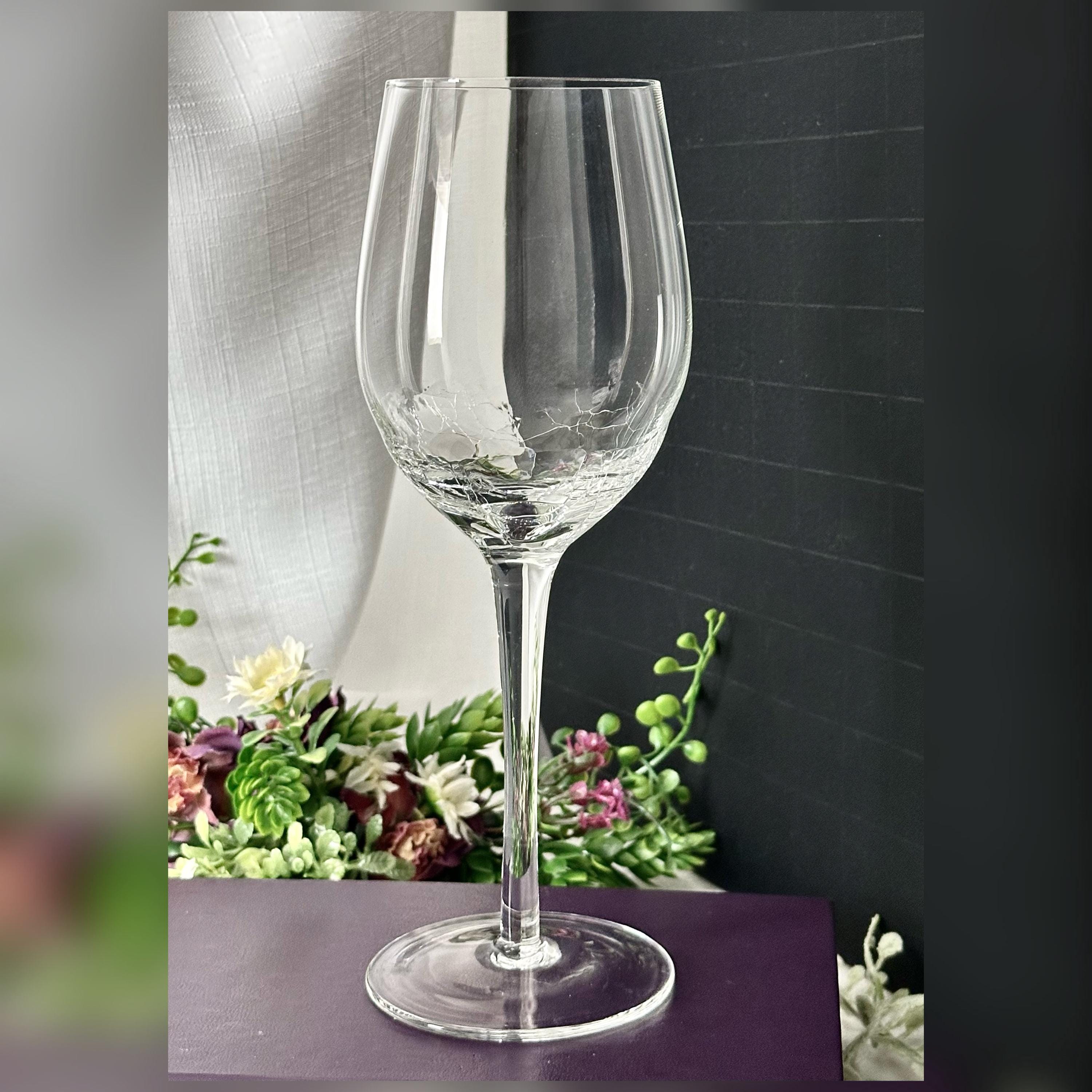 This is for 1 clear Pier 1 Crackle White Wine Glass. This is a stylish and contemporary addition to any barware collection. With a round shape and stemmed design, this 8 7/8" white wine glass features a clear color with a crackled glass texture, adding a unique touch to your table setting. This holds 12 Oz of liquid.